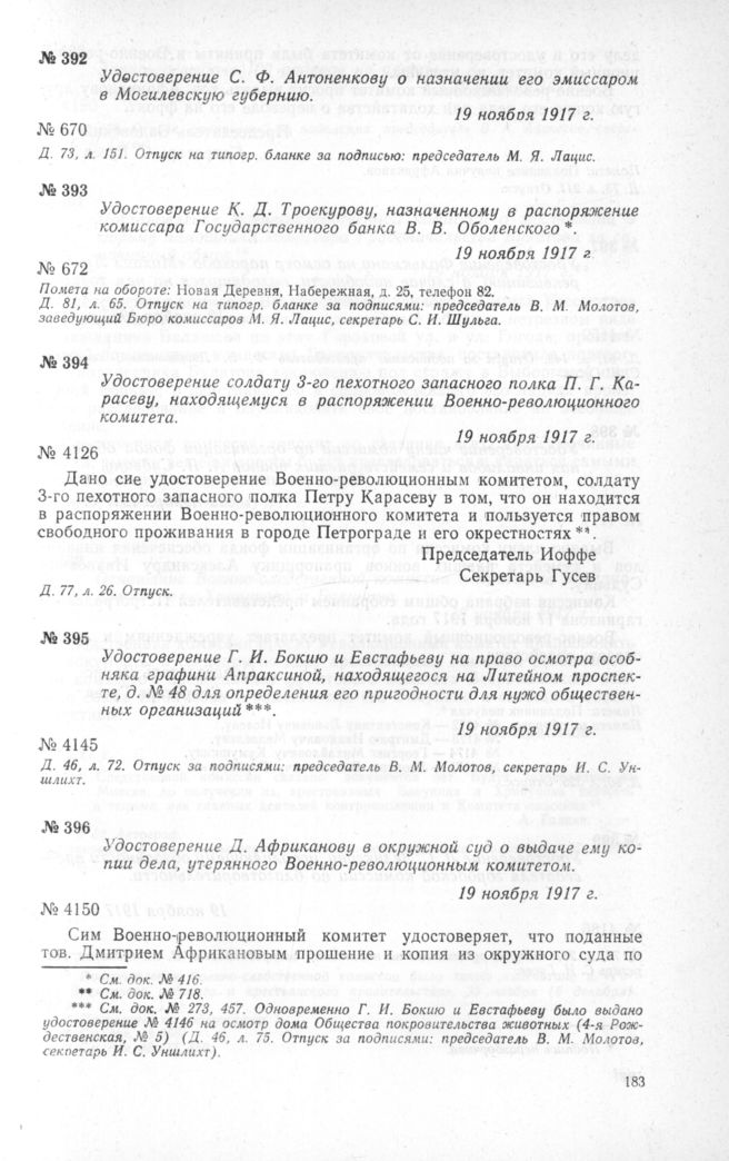 Петроградский Военно-революционный комитет: Док. и материалы в 3 т. Т. 3. — М.: Наука, 1967.