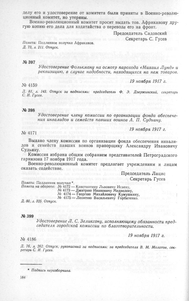 Петроградский Военно-революционный комитет: Док. и материалы в 3 т. Т. 3. — М.: Наука, 1967.