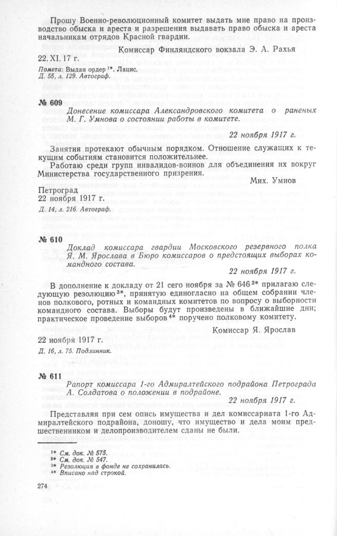 Петроградский Военно-революционный комитет: Док. и материалы в 3 т. Т. 3. — М.: Наука, 1967.