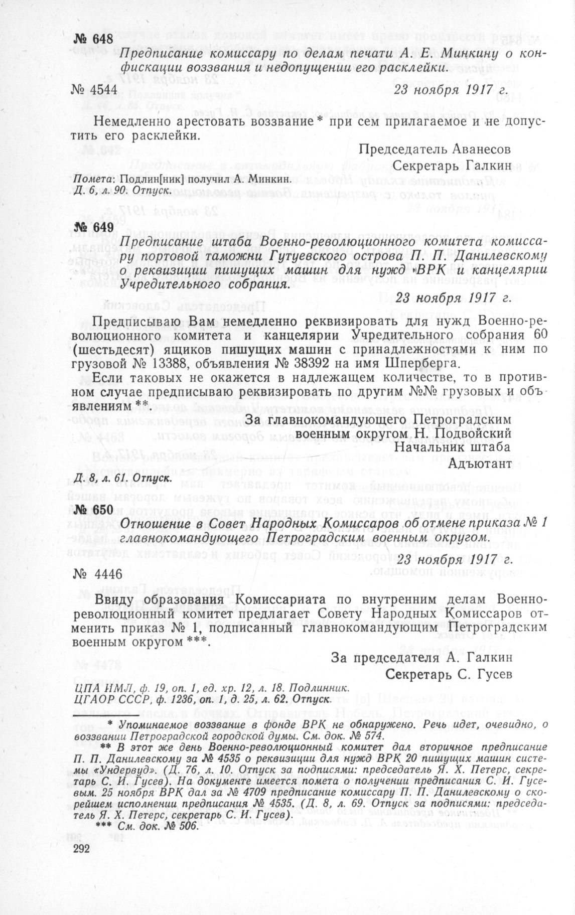 Петроградский Военно-революционный комитет: Док. и материалы в 3 т. Т. 3. — М.: Наука, 1967.