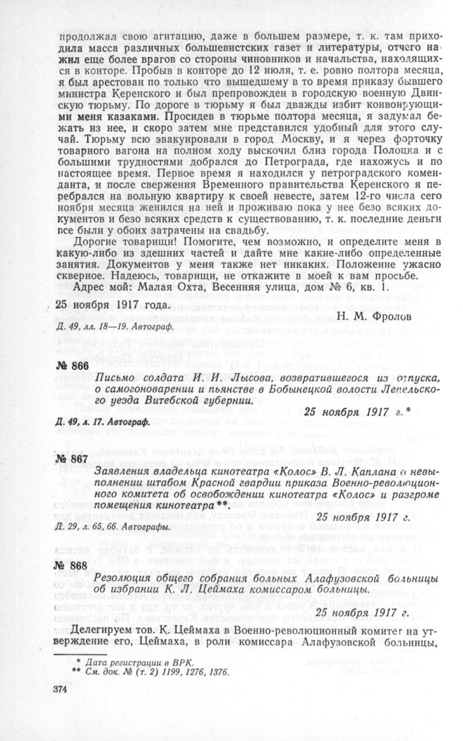 Петроградский Военно-революционный комитет: Док. и материалы в 3 т. Т. 3. — М.: Наука, 1967.