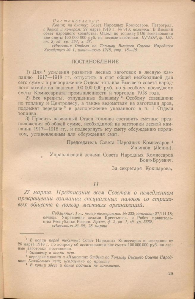 Главная Серия «Экономическая история. Документы, исследования, переводы» Декреты советской власти в 18 т. Декреты Советской власти. Т. II. 17 марта - 10 июля 1918 г. Документы 27 марта. Предписание всем Советам о немедленном прекращении взиман...