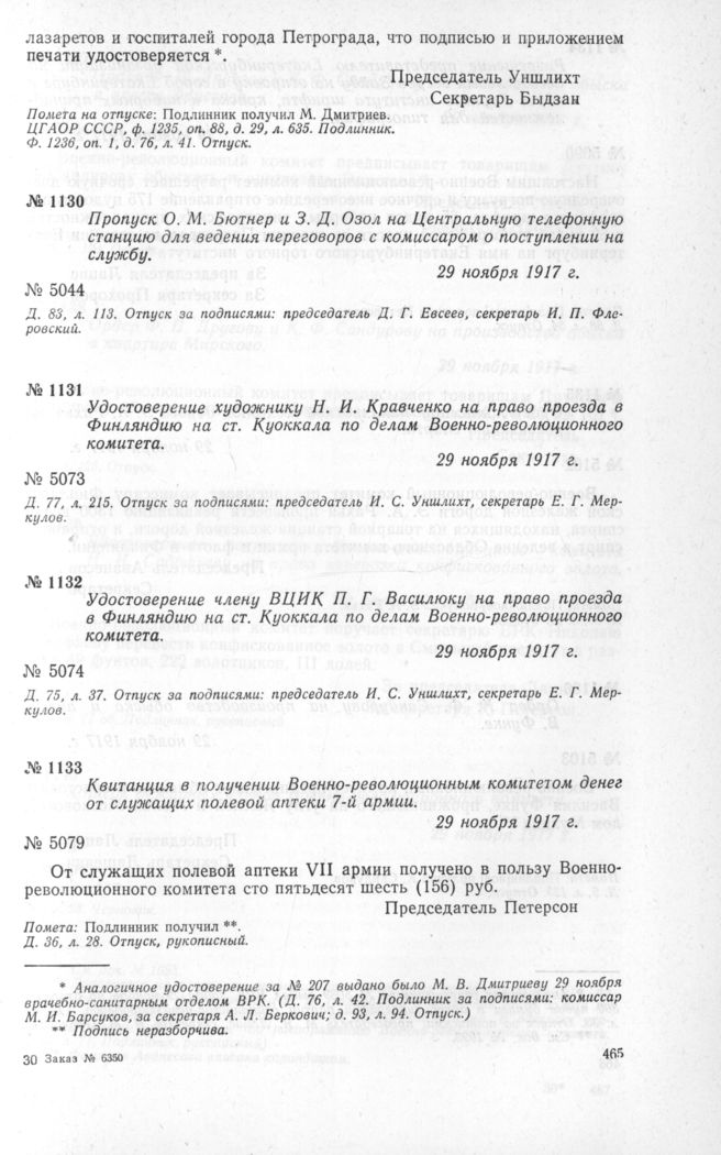 Петроградский Военно-революционный комитет: Док. и материалы в 3 т. Т. 3. — М.: Наука, 1967.