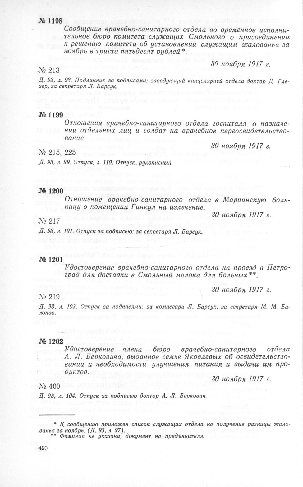Удостоверение члена бюро врачебно-санитарного отдела А. Л. Берковича, выданное семье Яковлевых об освидетельствовании и необходимости улучшения питания и выдачи им продуктов. 30 ноября 1917 г. // ЦГАОР СССР, ф. 1236, д. 93, л. 104. Отпуск.