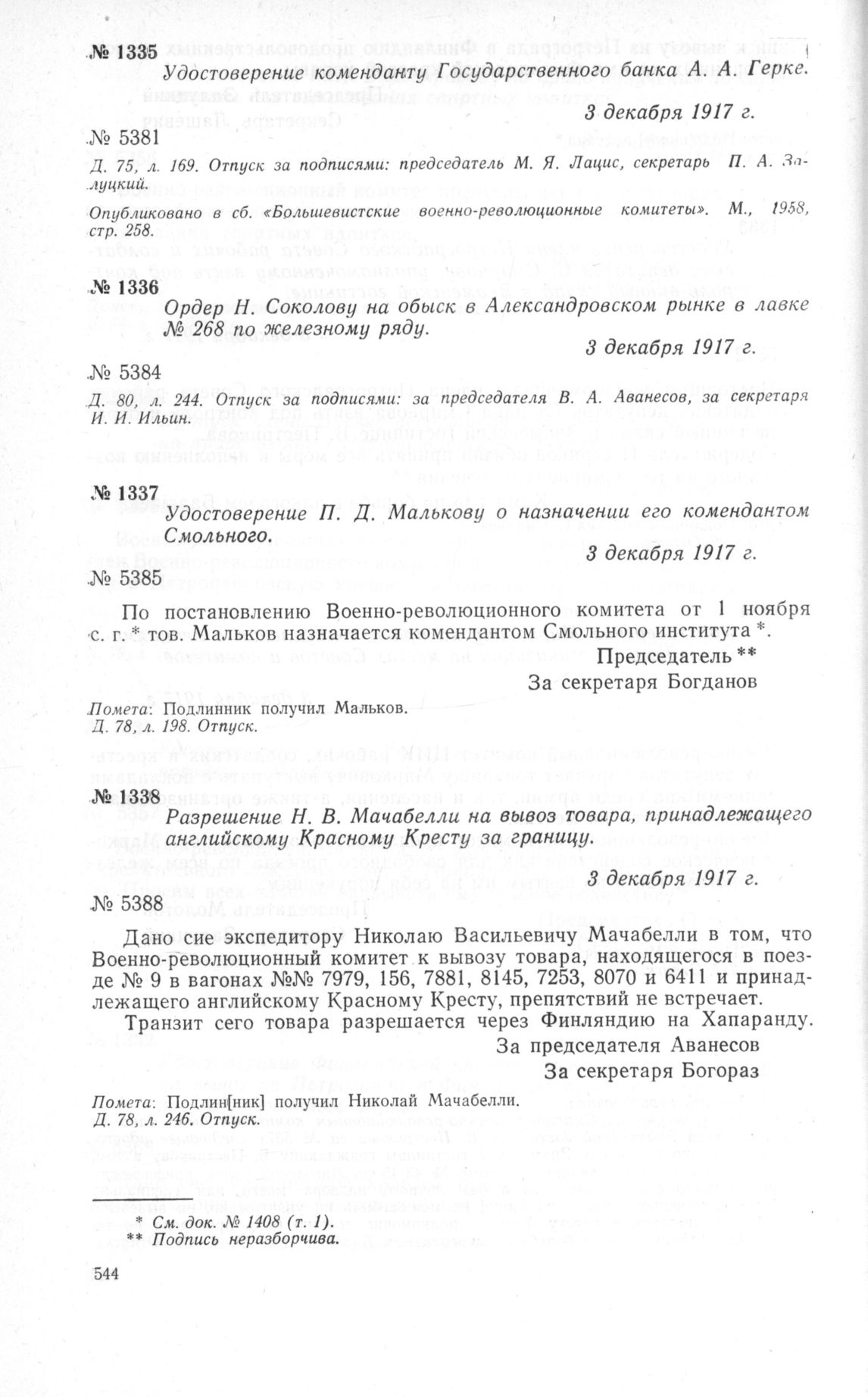 Петроградский Военно-революционный комитет: Док. и материалы в 3 т. Т. 3. — М.: Наука, 1967.