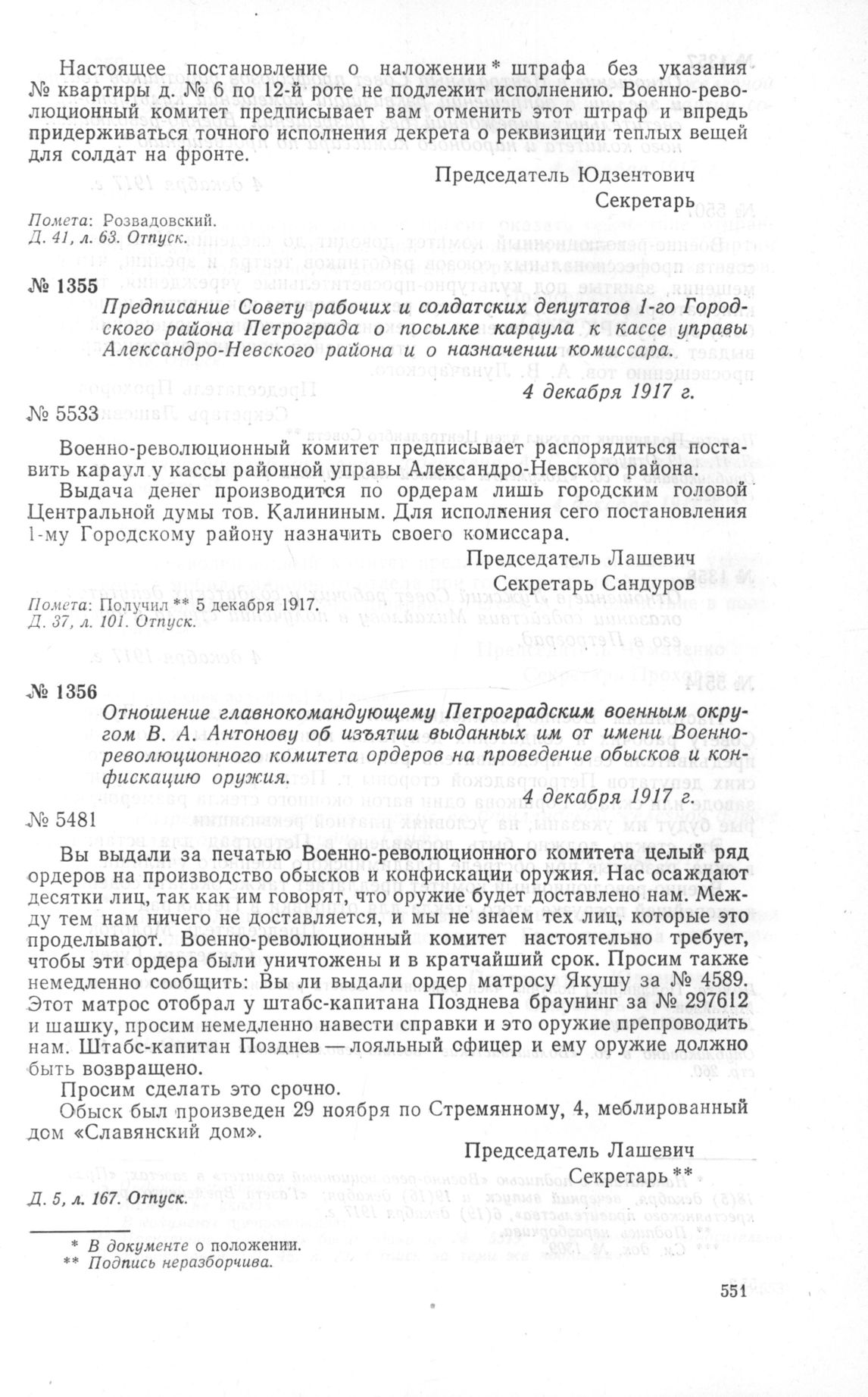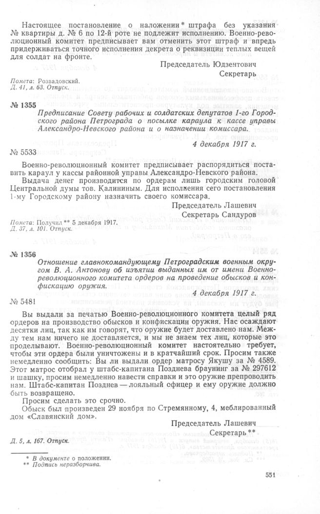 Предписание Совету рабочих и солдатских депутатов 1-го Городского района Петрограда о посылке караула к кассе управы Александро-Невского района и о назначении комиссара. 4 декабря 1917 г. // ЦГАОР СССР, ф. 1236, д. 37, л. 101. Отпуск.
