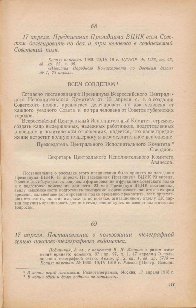 Главная Серия «Экономическая история. Документы, исследования, переводы» Декреты советской власти в 18 т. Декреты Советской власти. Т. II. 17 марта - 10 июля 1918 г. Документы 17 апреля. Предписание Президиума ВЦИК всем Советам делегировать по...