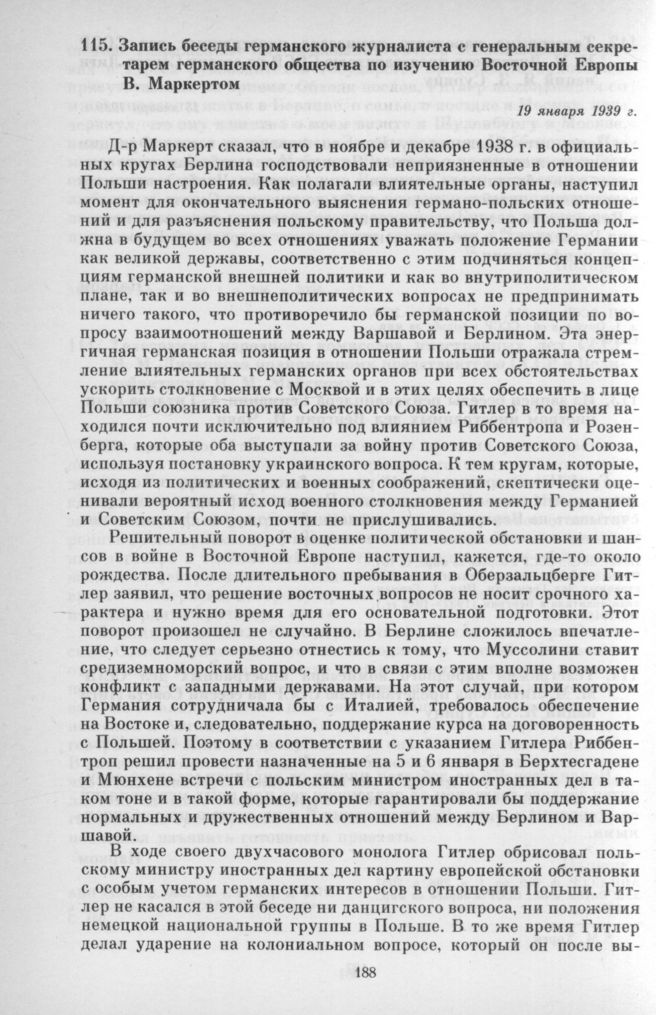 Запись беседы германского журналиста с генеральным секретарем германского общества по изучению Восточной Европы В. Маркертом. 19 января 1939 г. // СССР в борьбе за мир... С. 161-163.