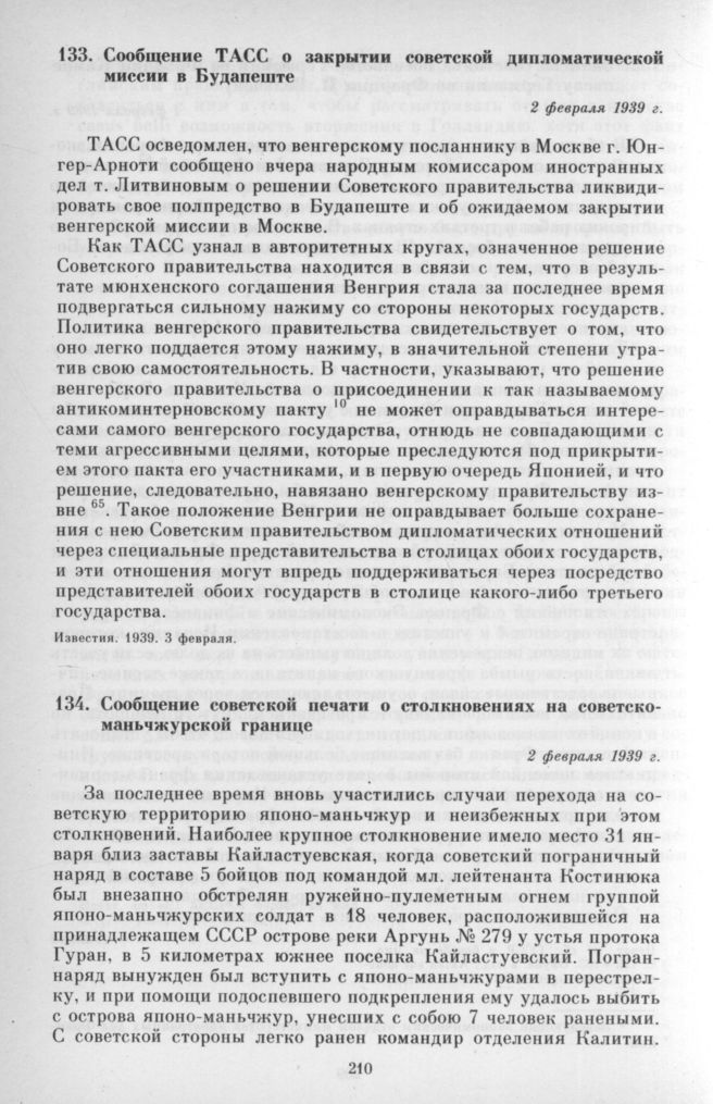 Сообщение советской печати о столкновениях на советско-маньчжурской границе. 2 февраля 1939 г. // Известия. 1939. 2 февраля.