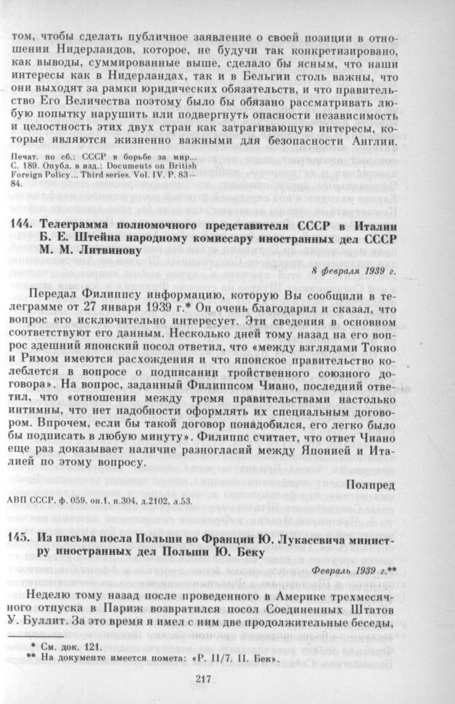 Из письма посла Польши во Франции Ю. Лукасевича министру иностранных дел Польши Ю. Беку. февраль 1939 г. // СССР в борьбе за мир... С. 190 — 191.; Polnische Dokumente zur Vorgeschichte des Krieges. Auswartiges Amt. Erste Volge. Berlin. 1940 S. 23-24.