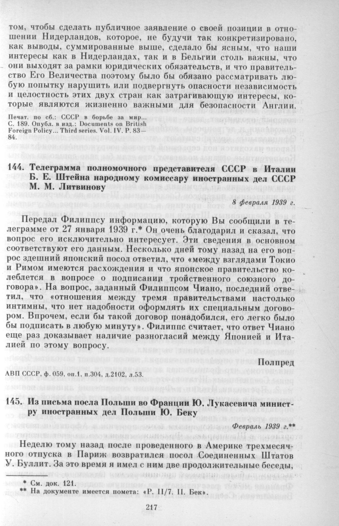 СССР в борьбе за мир накануне второй мировой войны (Сентябрь 1938 г.-август 1939 г.). Документы и материалы. М., 1971. С. 190-191.