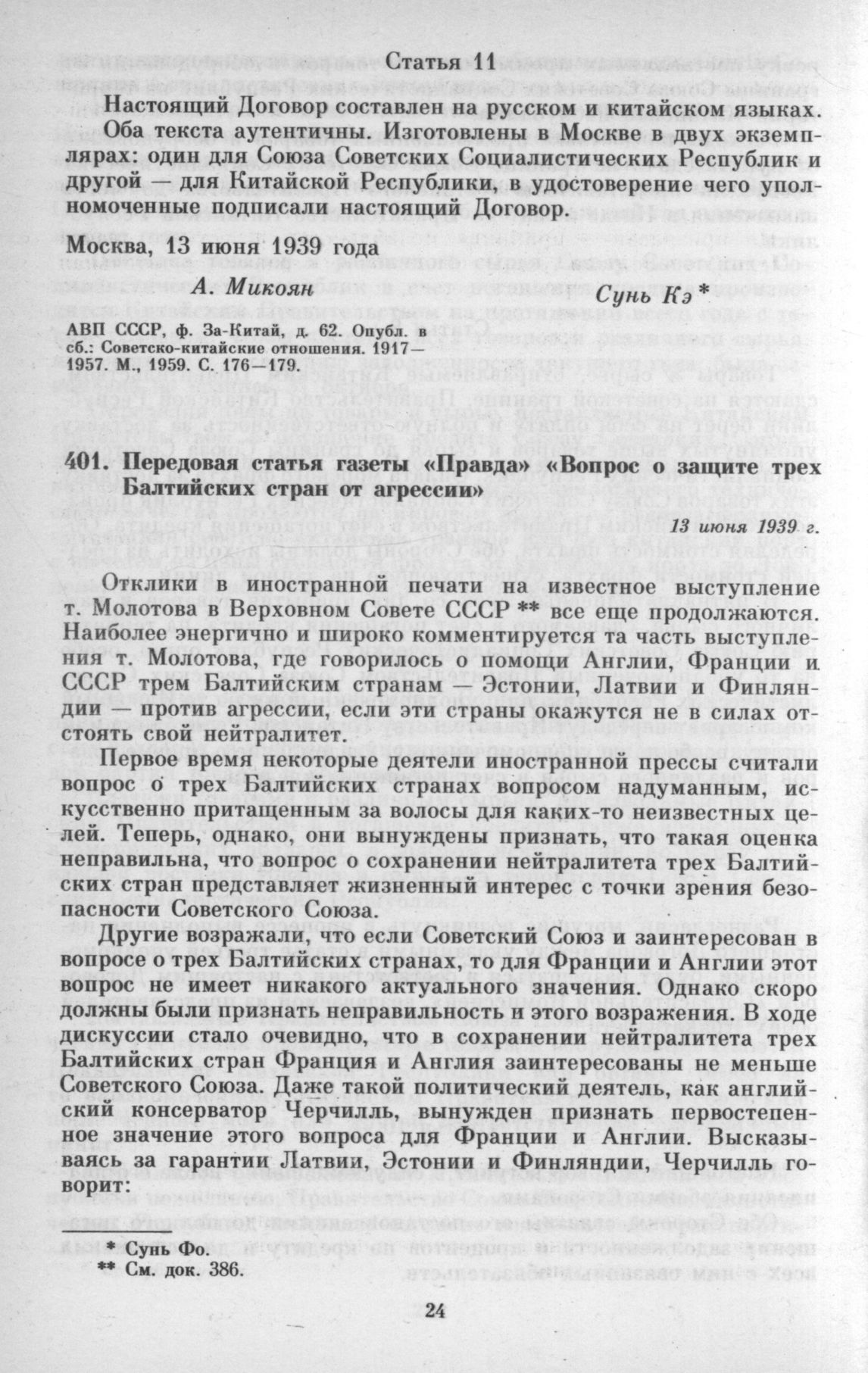 Передовая статья газеты «Правда» «Вопрос о защите трех Балтийских стран от агрессии». 13 июня 1939 г. // Правда. 1939. 13 июня.