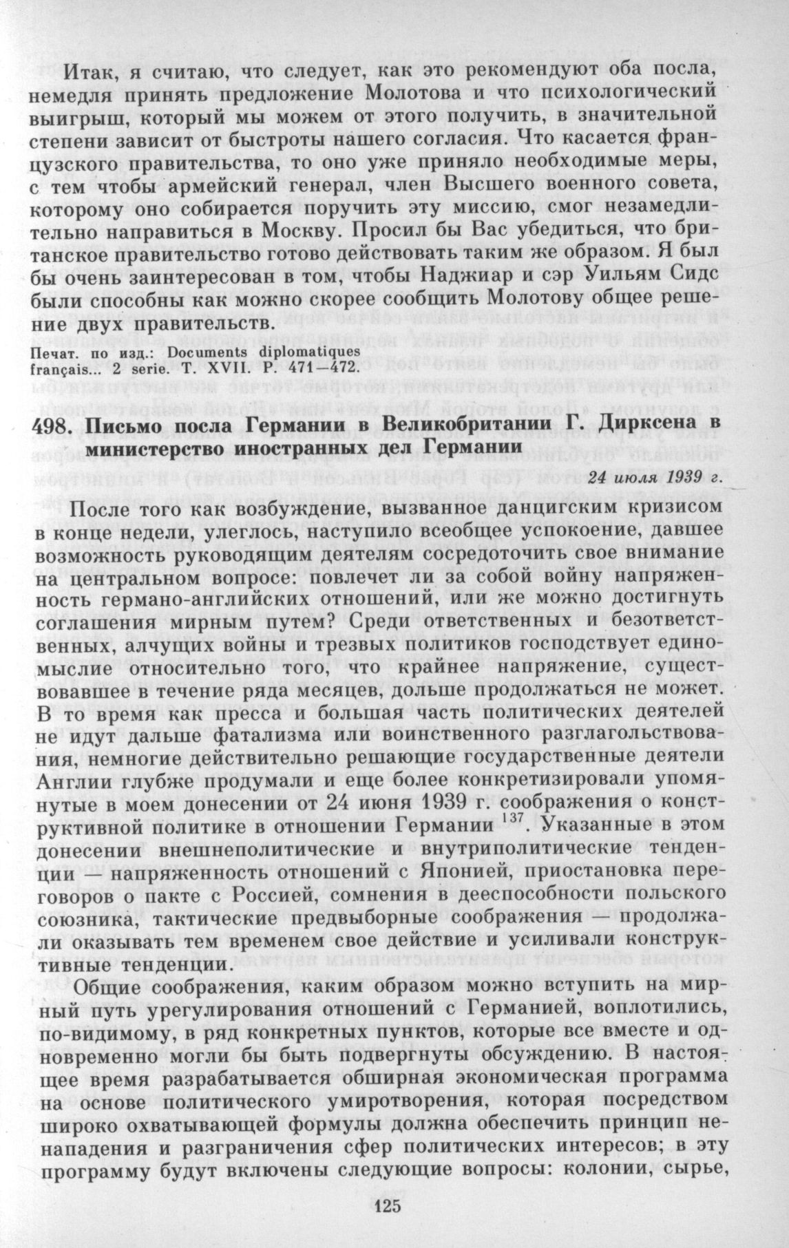 Письмо посла Германии в Великобритании Г. Дирксенд в министерство иностранных дел Германии. 24 июля 1939 г. // Документы и материалы кануна второй мировой войны... Т. 2. С. 146—149.; Akten zur deutschen auswärtigen Politik... Serie D. Bd. VI. S. 815-817.
