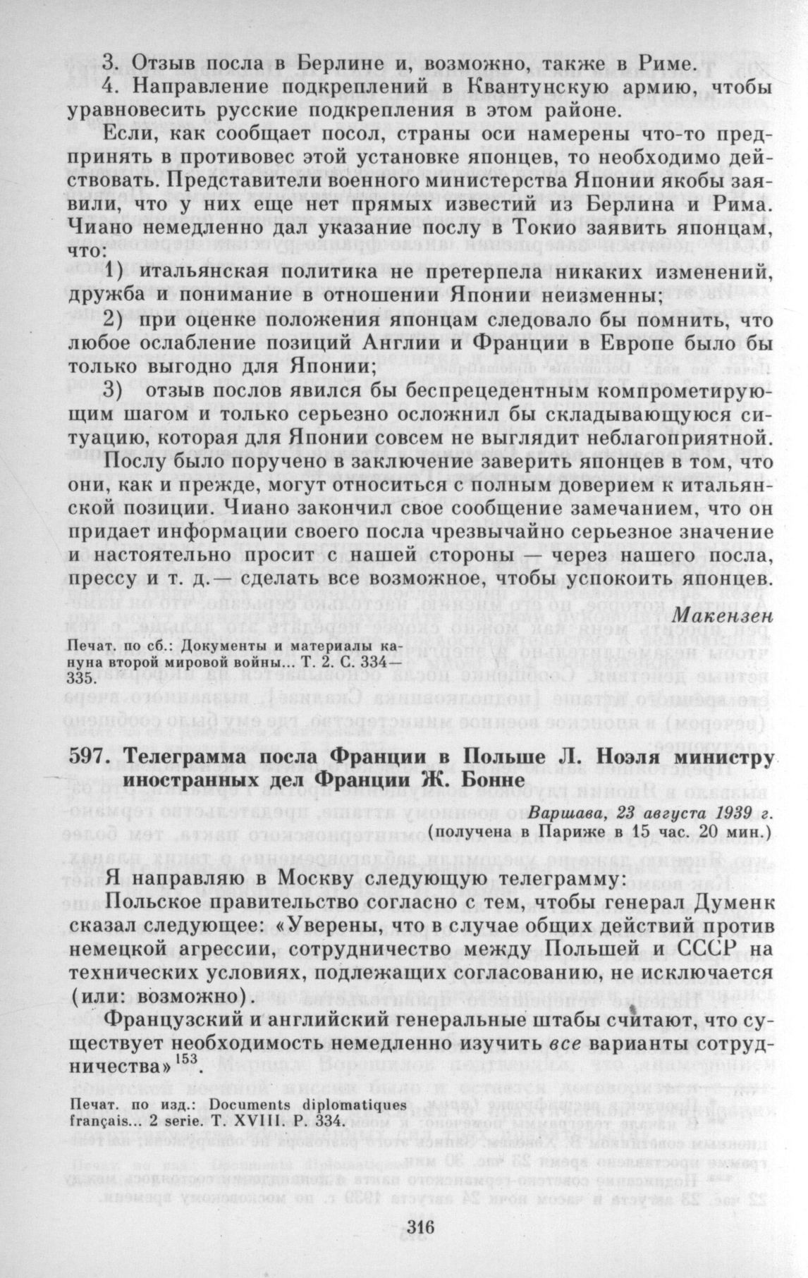 Documents diplomatiques français. 1938-1939. Ministère des affaires étrangères. Paris. 1939. 2 serie, T. XVIII. P. 334.