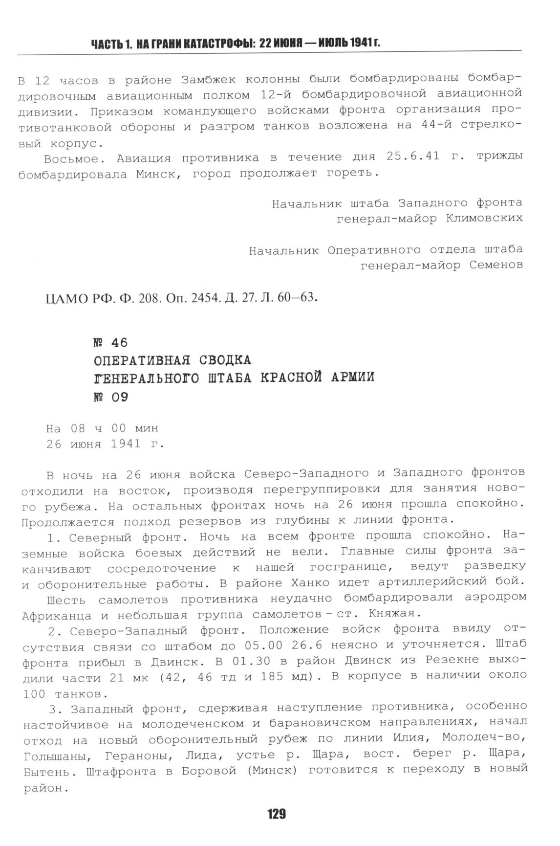 Оперативная сводка Генерального штаба Красной Армии № 09. 26 июня 1941 г. // Великая Отечественная война — день за днем: по материалам рассекреченных оперативных сводок Генерального штаба. Т. 1. Вторжение. М.: Военное издательство, 2008. С. 31—32.