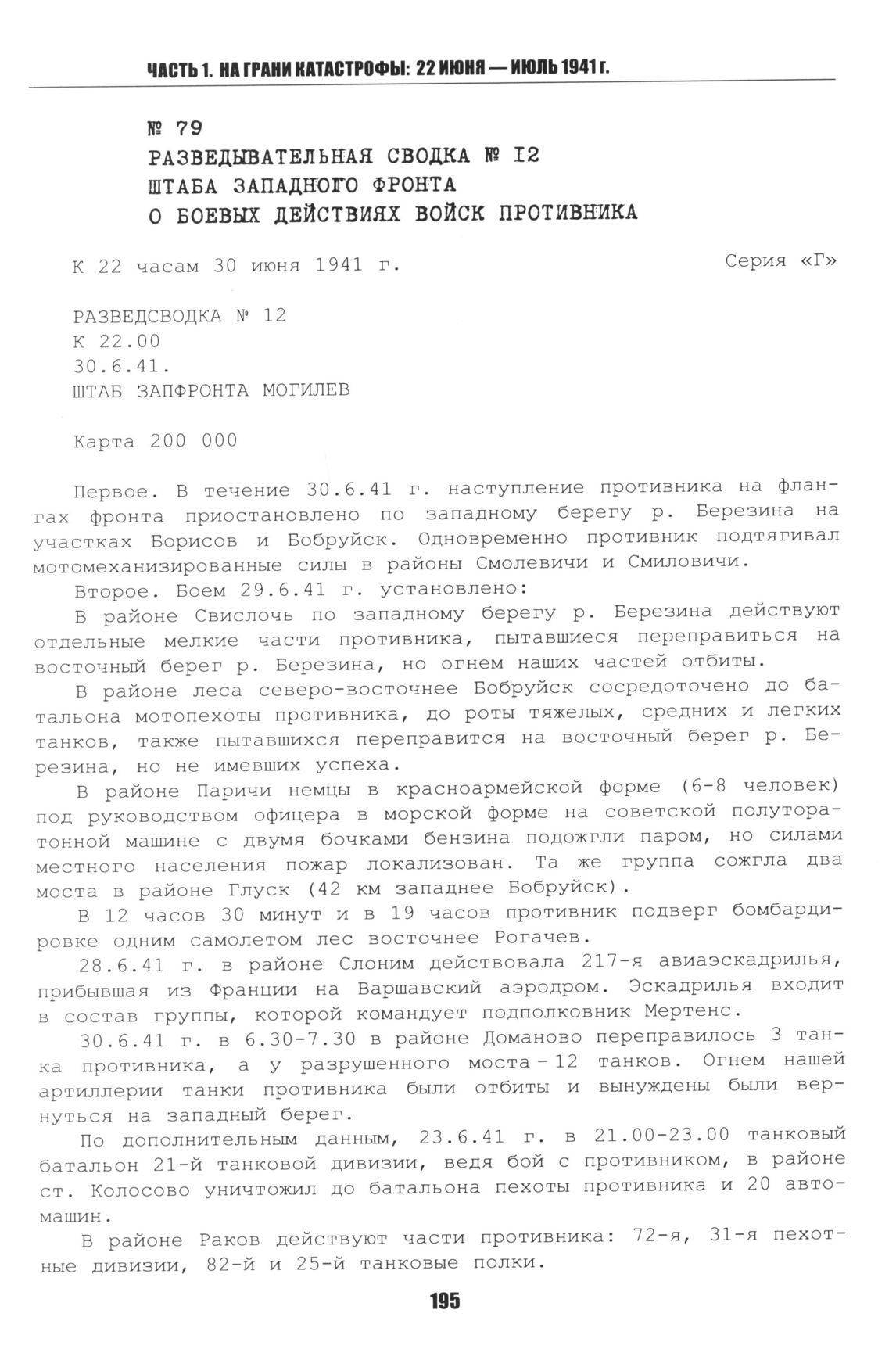 Разведывательная сводка № 12 штаба Западного фронта о боевых действиях войск противника. 30 июня 1941 г. Могилев