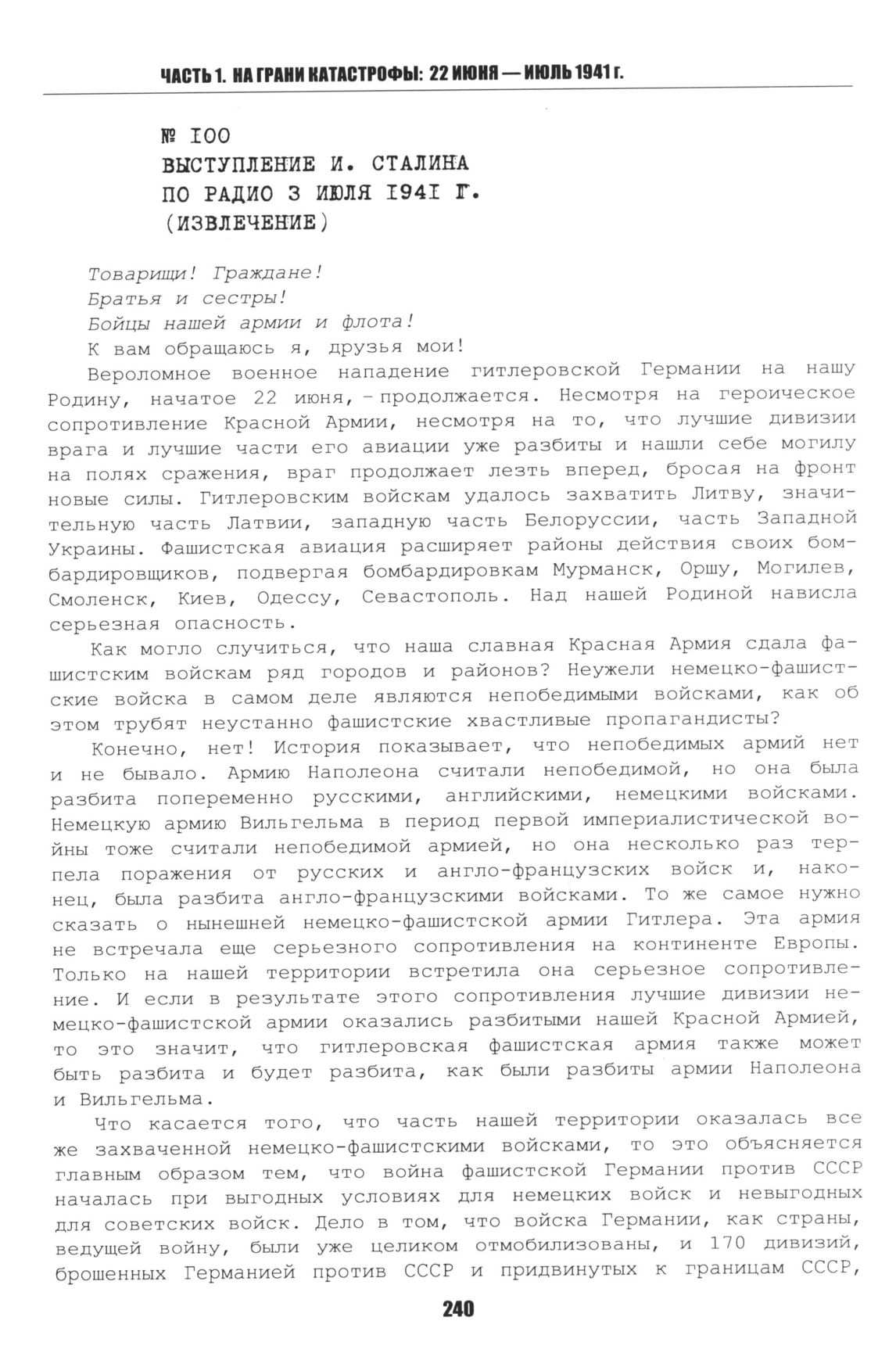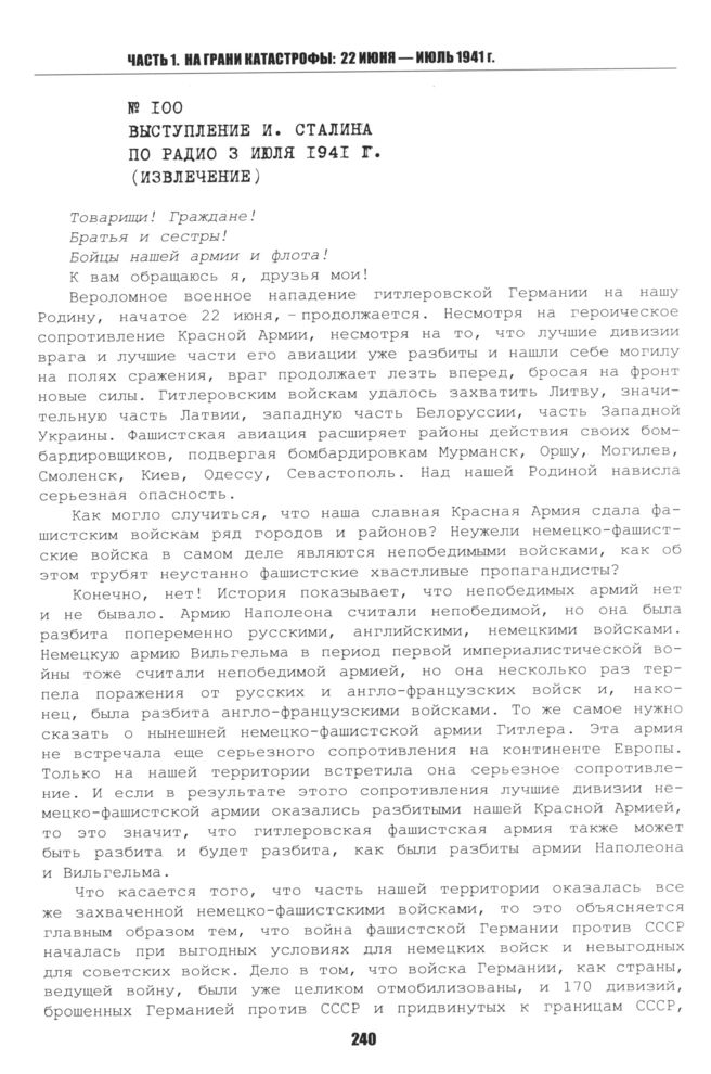 Выступление И. Сталина по радио 3 июля 1941 г. (извлечение) // Сталин И. О Великой Отечественной войне Советского Союза. М., 1947. С. 9-17.