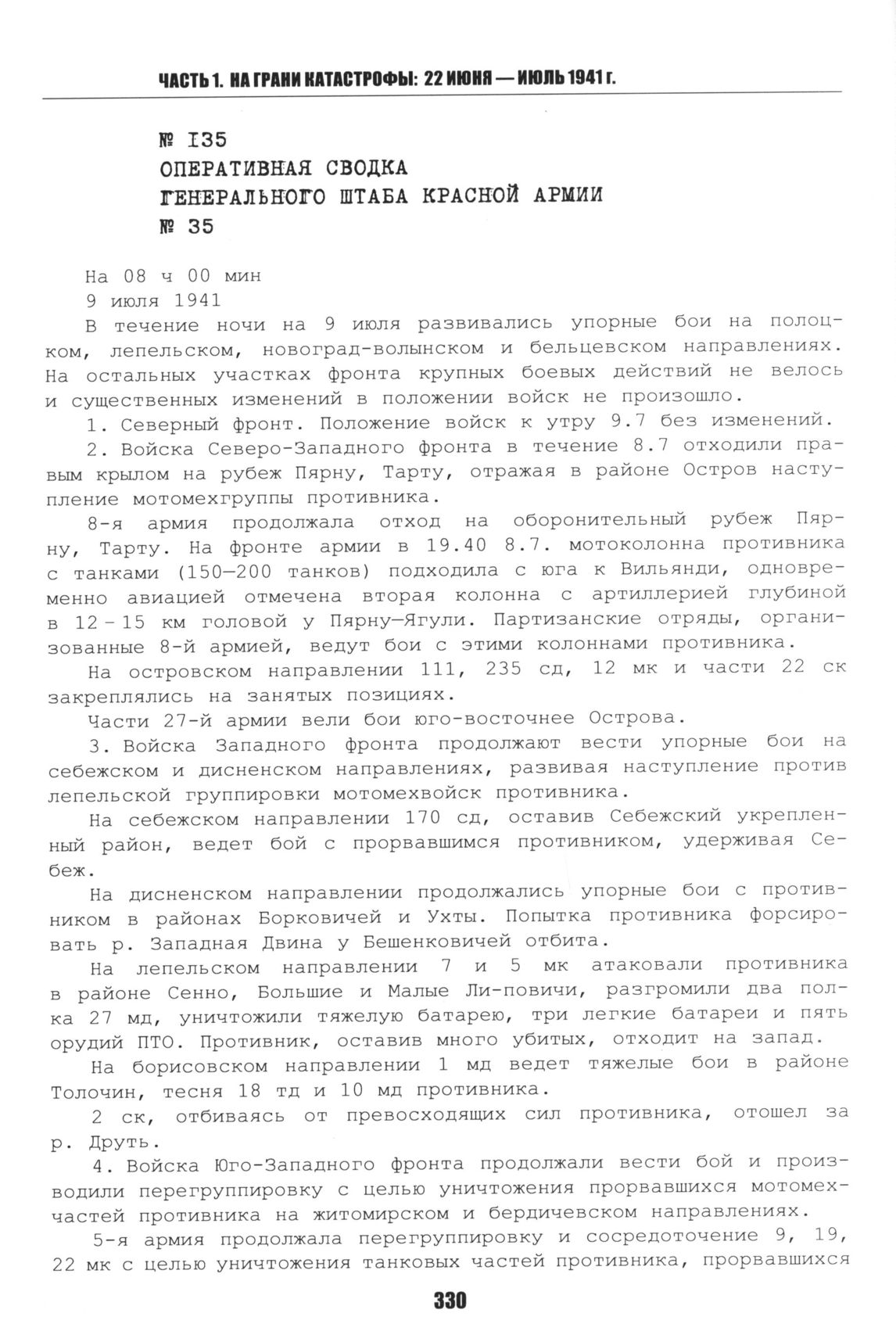Оперативная сводка Генерального штаба Красной Армии № 35. 9 июля 1941 // Великая Отечественная война — день за днем: по материалам рассекреченных оперативных сводок Генерального штаба. Т. 1. Вторжение. М.: Военное издательство, 2008. С. 70-71.