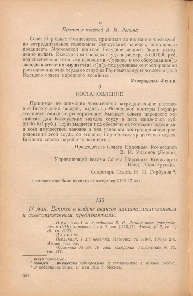 Главная Серия «Экономическая история. Документы, исследования, переводы» Декреты советской власти в 18 т. Декреты Советской власти. Т. II. 17 марта - 10 июля 1918 г. Документы 17 мая. Декрет о выдаче авансов национализированным и секвестрованн...
