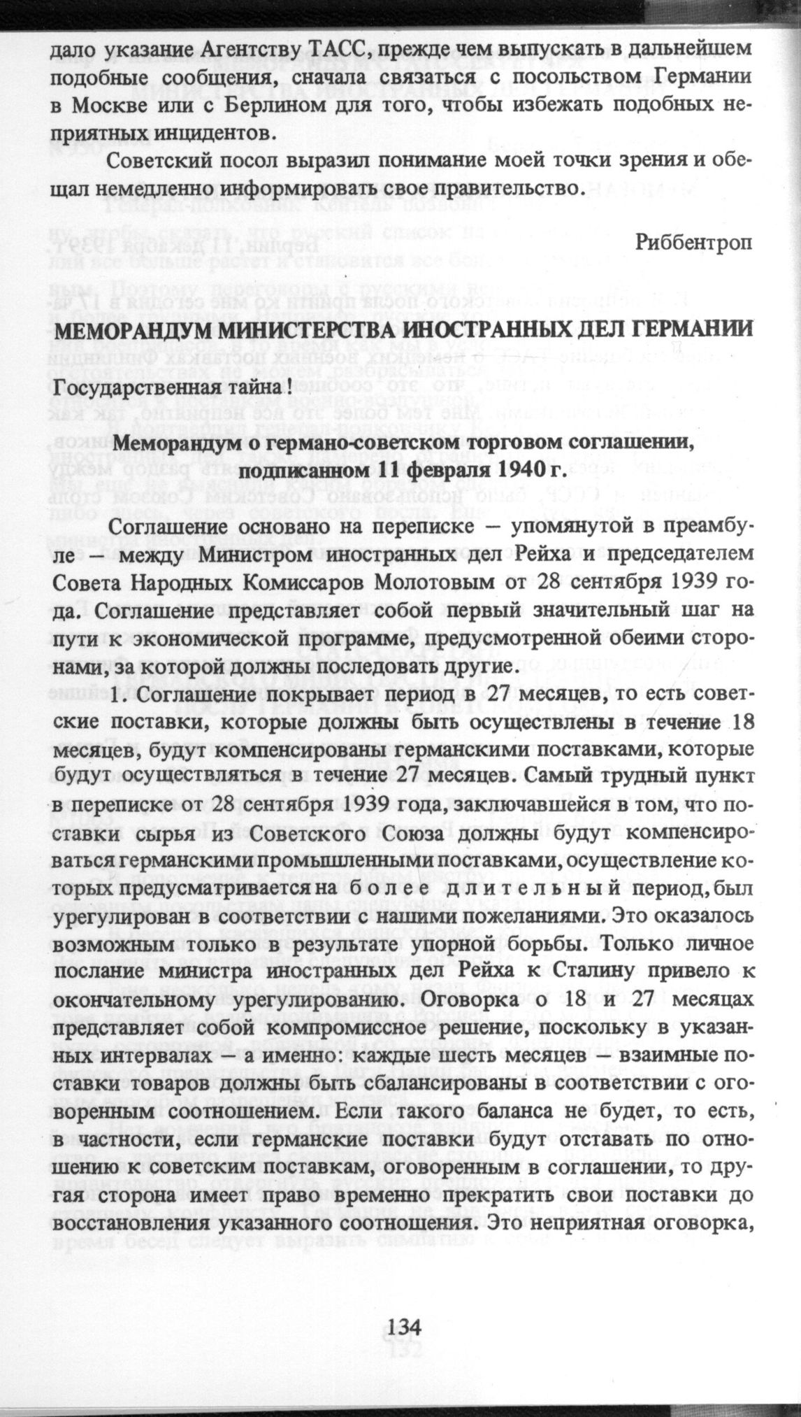 Меморандум Министерства иностранных дел Германии. Меморандум о Германо-Советском торговом соглашении, подписанном 11 февраля 1940 г. Берлин, 26 февраля 1940 г.