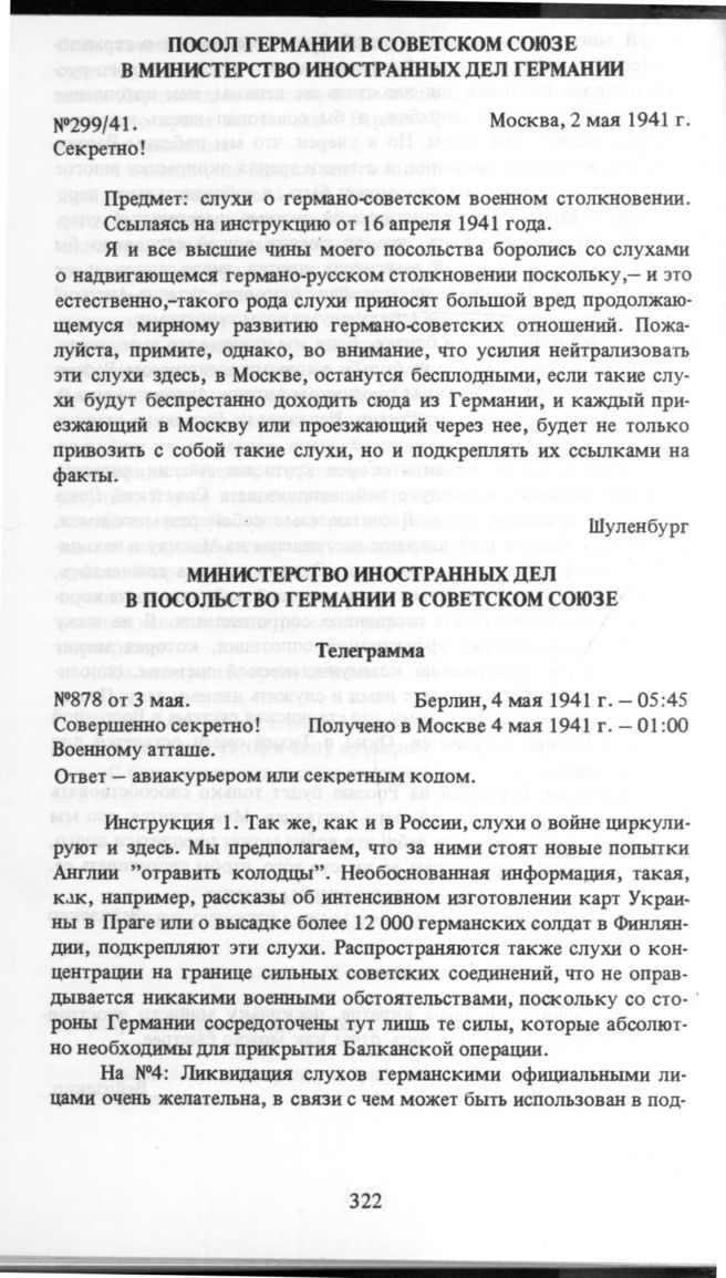 Министерство иностранных дел в Посольство Германии в Советском Союзе. Телеграмма №878. От 3 мая 1941 г.