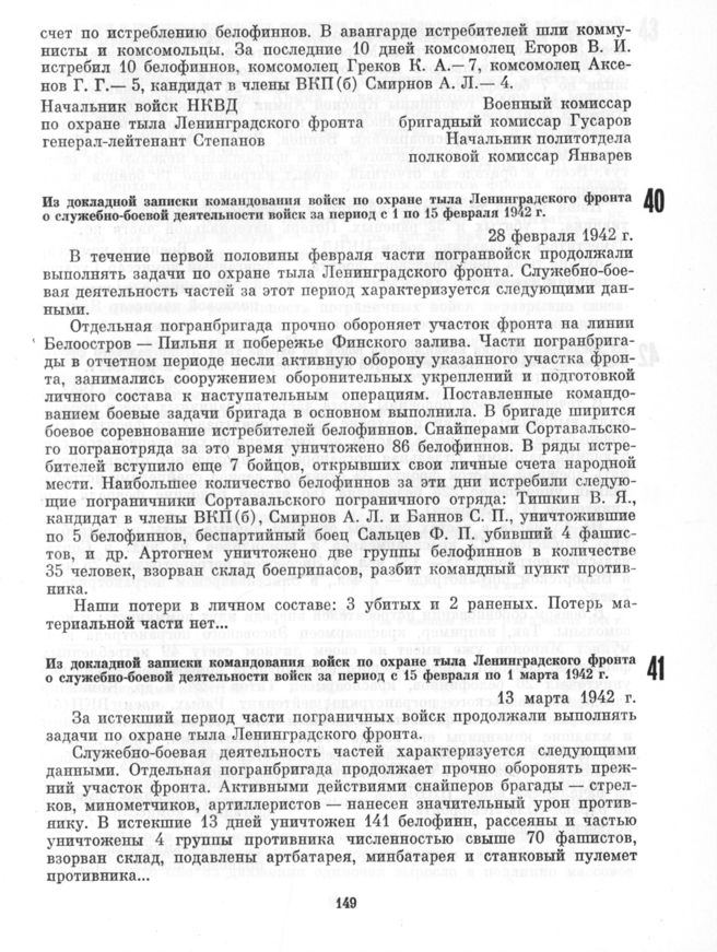 Из докладной записки командования войск по охране тыла Ленинградского фронта о служебно-боевой деятельности войск за период с 1 по 15 февраля 1942 г. 28 февраля 1942 г.