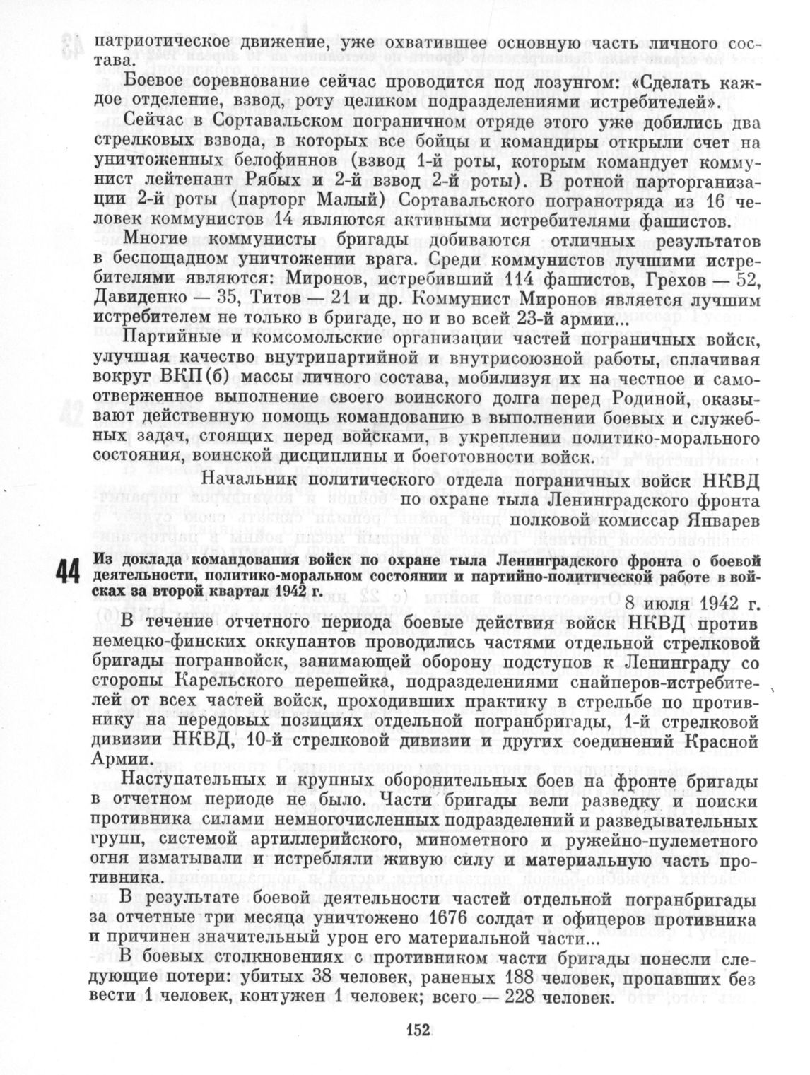 Из доклада командования войск по охране тыла Ленинградского фронта о боевой деятельности, политико-моральном состоянии и партийно-политической работе в войсках за второй квартал 1942 г. 8 июля 1942 г.