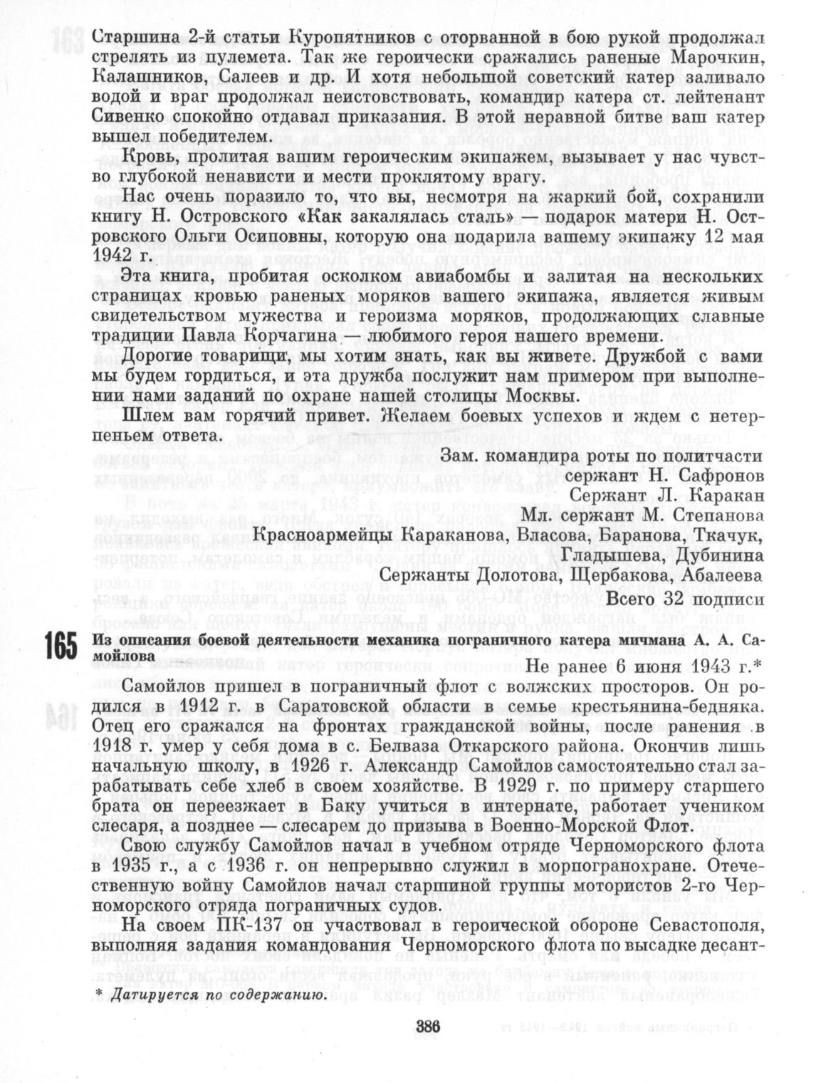 Из описания боевой деятельности механика пограничного катера мичмана А.А. Самойлова. Не ранее 6 июня 1943 г.