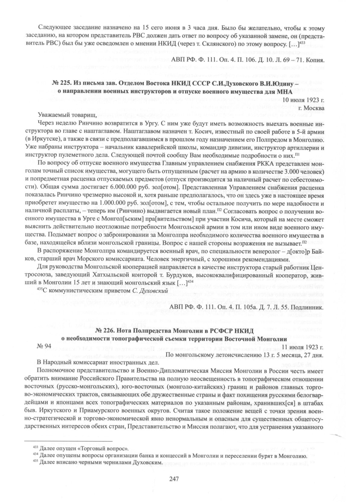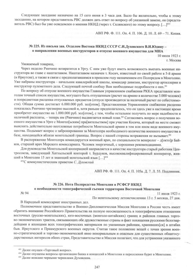 Из письма зав. Отделом Востока НКИД СССР С.И.Духовского В.И.Юдину - о направлении военных инструкторов и отпуске военного имущества для МНА. 10 июля 1923 г., г. Москва