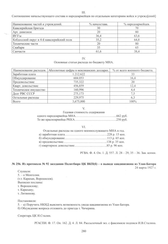 Из протокола № 92 заседания Политбюро ЦК ВКП(б) - о выводе кавдивизиона из Улан-Батора. 24 марта 1927 г. // РГАСПИ. Ф. 17. Оп. 162. Д. 4. Л. 84. Рассылочный экз. с факсимиле подписи И.В.Сталина.