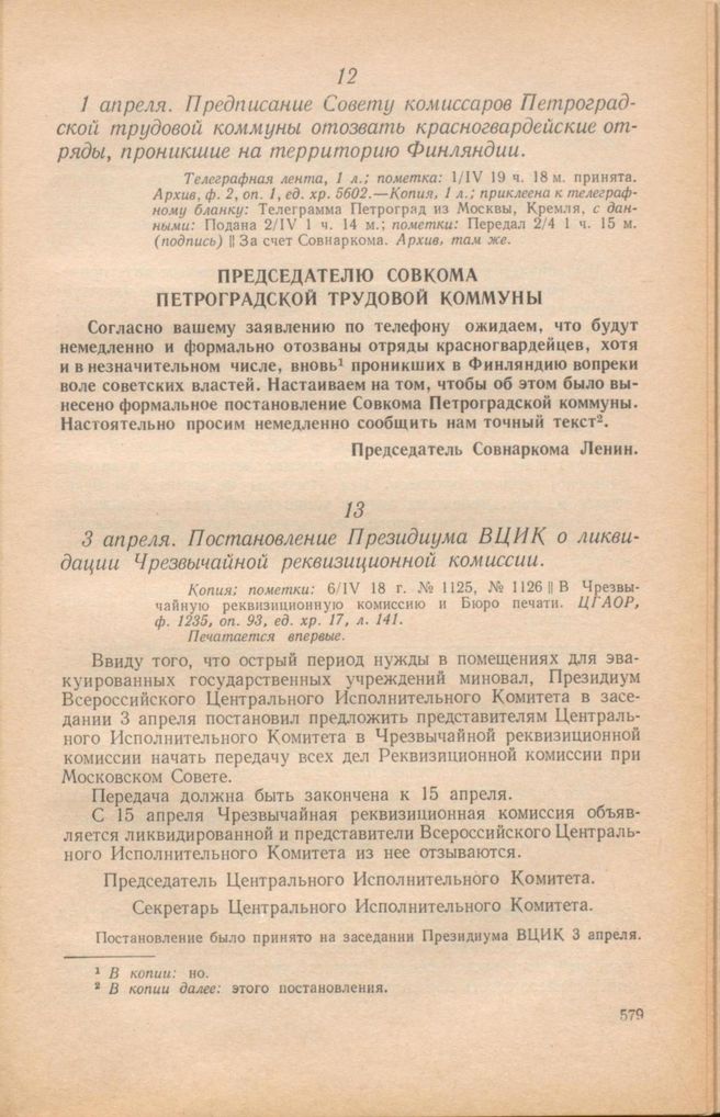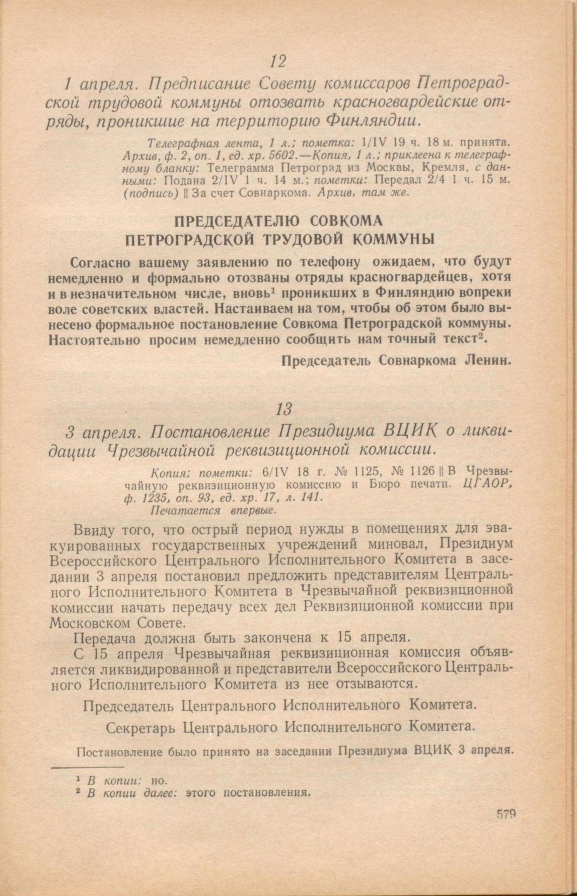 Главная Серия «Экономическая история. Документы, исследования, переводы» Декреты советской власти в 18 т. Декреты Советской власти. Т. II. 17 марта - 10 июля 1918 г. Документы 3 апреля. Постановление Президиума ВЦИК о ликвидации Чрезвычайной р...