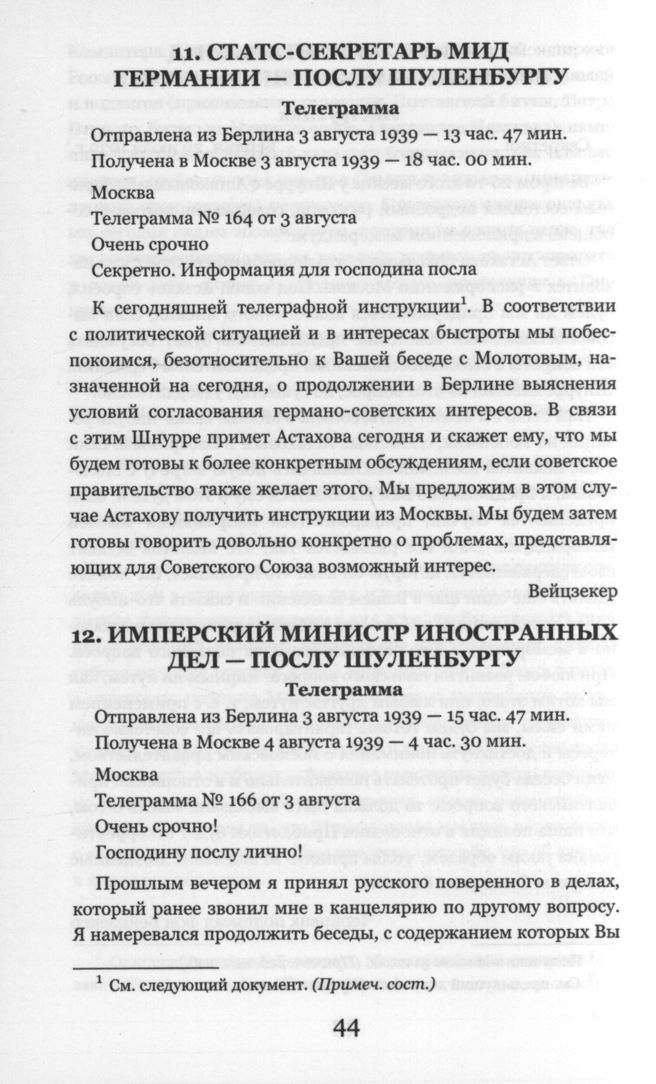 Статс-секретарь МИД Германии - Послу Шуленбургу. Телеграмма. Берлин. 3 августа 1939 г.