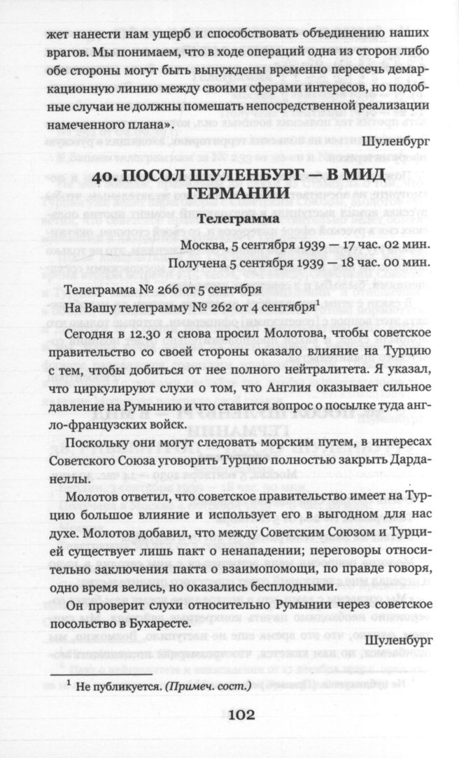 Посол Шуленбург - в МИД Германии. Телеграмма. Москва. 5 сентября 1939