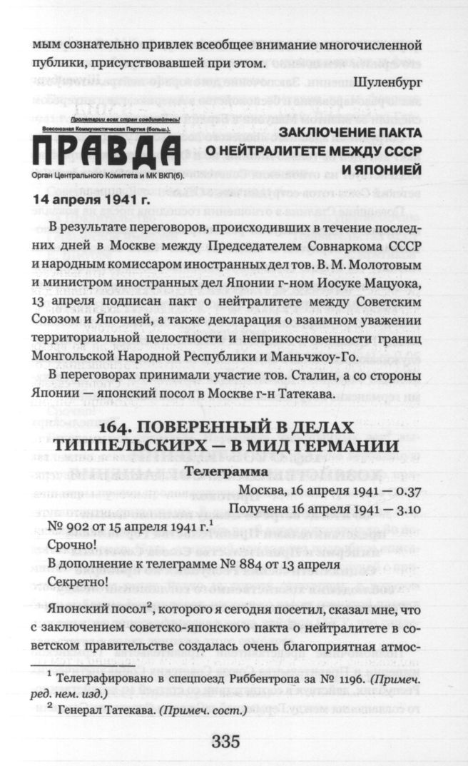 Заключение пакта о нейтралитете между СССР и Японией // Правда. 14 апреля 1941 г.