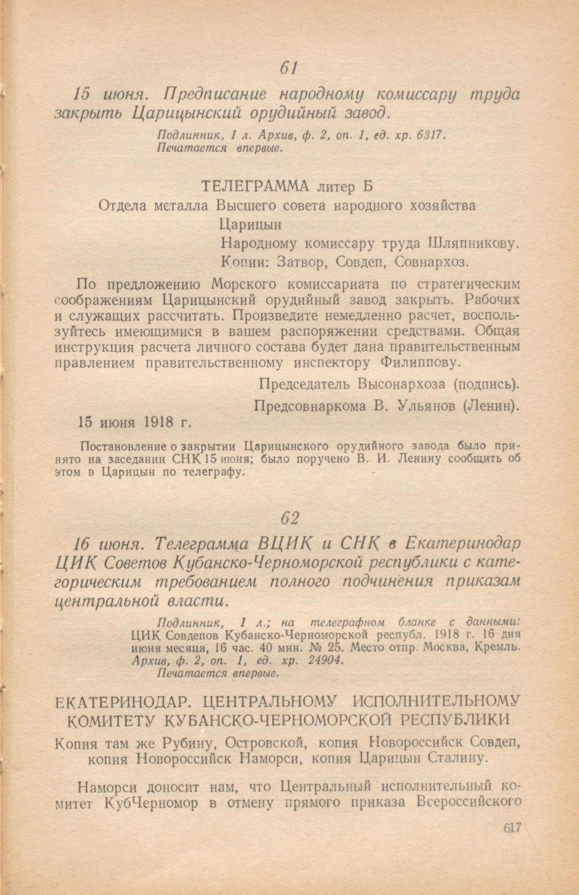 Главная Серия «Экономическая история. Документы, исследования, переводы» Декреты советской власти в 18 т. Декреты Советской власти. Т. II. 17 марта - 10 июля 1918 г. Документы 16 июня. Телеграмма ВЦИК и СНК в Екатеринодар ЦИК Советов Кубанско-...