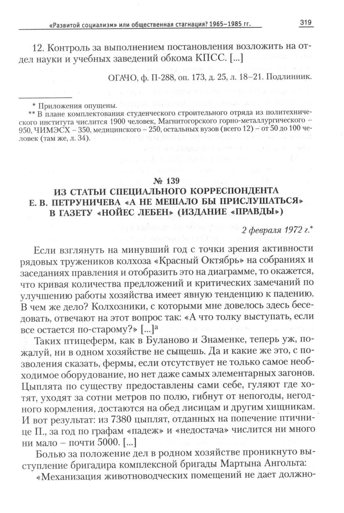 Из статьи специального корреспондента Е. В. Петруничева «А не мешало бы прислушаться» в газету «Нойес Лебен» (издание «Правды»), 2 февраля 1972 г. // ОГАЧО, Ф. П-288, Оп. 173, Д. 142, Л. 168-171. Копия.