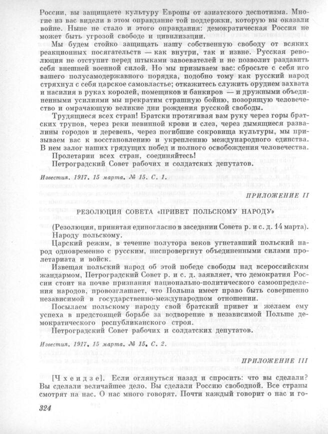 14 марта. III. Общее собрание. Приложение. Резолюция Совета «Привет польскому народу» // Известия. 1917. 15 марта. № 15, С. 2.