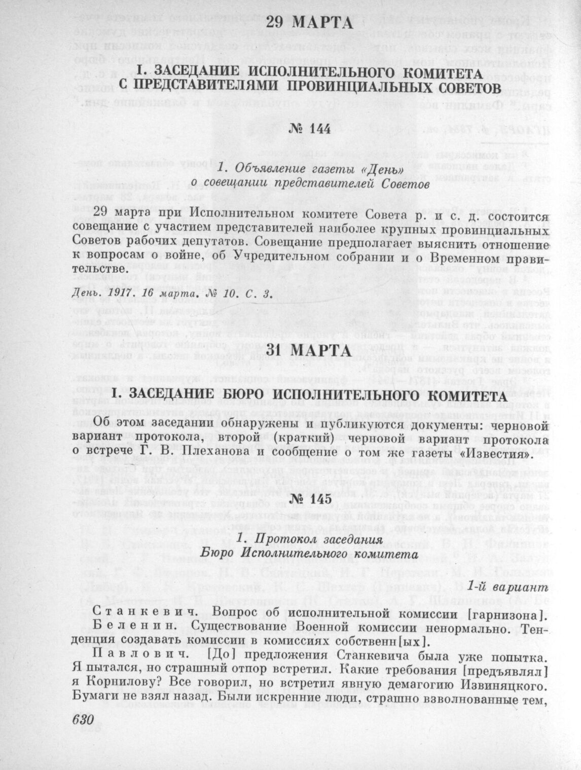 29 марта. I. Заседание Исполнительного комитета с представителями провинциальных советов. 1. Объявление газеты «День» о совещании представителей Советов // День. 1917. 16 марта. № 10. С. 3.