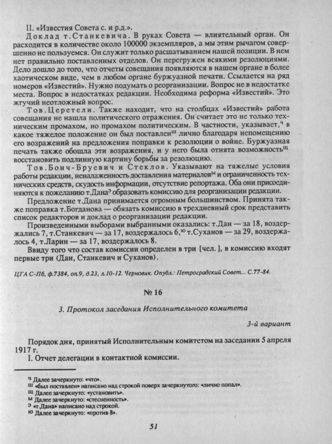 Петроградский Совет рабочих и солдатских депутатов в 1917 году: Протоколы, стенограммы и отчеты, резолюции и постановления общих собраний, секций, заседаний Исполнительного комитета, Бюро Исполнительного комитета и фракций (27 февраля — 25 октября 1917 года). Т. 2 (1 апреля — 5 мая 1917 года). — Спб.: Изд-во «Б-ка «Звезды»; АО «Атос», 1995.