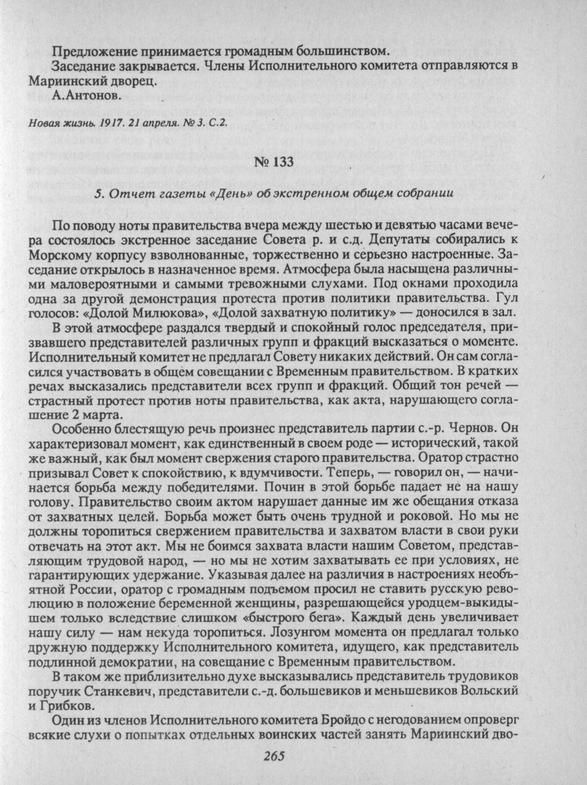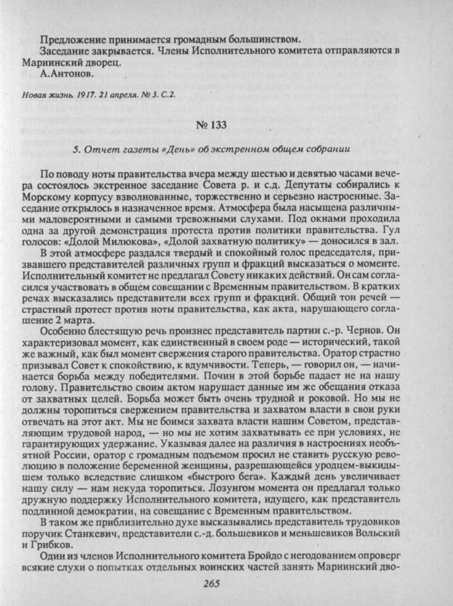 Петроградский Совет рабочих и солдатских депутатов в 1917 году: Протоколы, стенограммы и отчеты, резолюции и постановления общих собраний, секций, заседаний Исполнительного комитета, Бюро Исполнительного комитета и фракций (27 февраля — 25 октября 1917 года). Т. 2 (1 апреля — 5 мая 1917 года). — Спб.: Изд-во «Б-ка «Звезды»; АО «Атос», 1995.