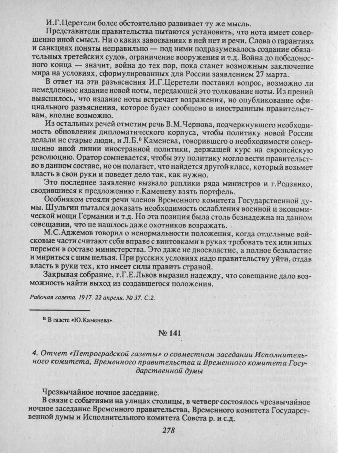20 апреля. V. Совместное заседание Исполнительного комитета, Временного правительства и Временного комитета Государственной Думы. 4. Отчет «Петроградской газеты» о совместном заседании Исполнительного комитета, Временного правительства и Временного комитета Государственной думы // Петроградская газета. 1917. 22 апреля. № 92. С. 1-2.