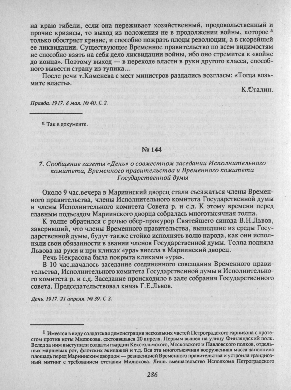 20 апреля. V. Совместное заседание Исполнительного комитета, Временного правительства и Временного комитета Государственной Думы. 7. Сообщение газеты «День» о совместном заседании Исполнительного комитета, Временного правительства и Временного комитета Государственной думы // День. 1917. 21 апреля. № 39. С. 3.