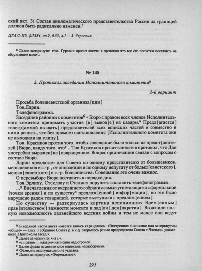 21 апреля. II. Заседание Исполнительного комитета. 2. Протокол заседания Исполнительного комитета // ЦГА С-Пб, Ф. 7384, Оп. 9, Д. 35, Л. 6 - 8. Черновик.