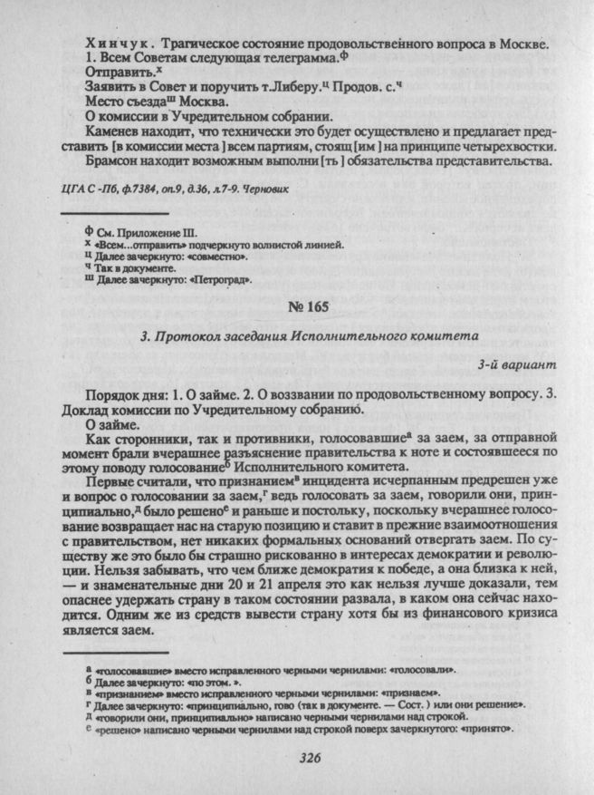 22 апреля. II. Заседание Исполнительного комитета. 3. Протокол заседания Исполнительного комитета // ЦГА С-Пб, Ф. 7384, Оп. 9, Д. 36, Л.1-2. Машинописная копия. Опубл: Петроградский Совет... С. 119-121.