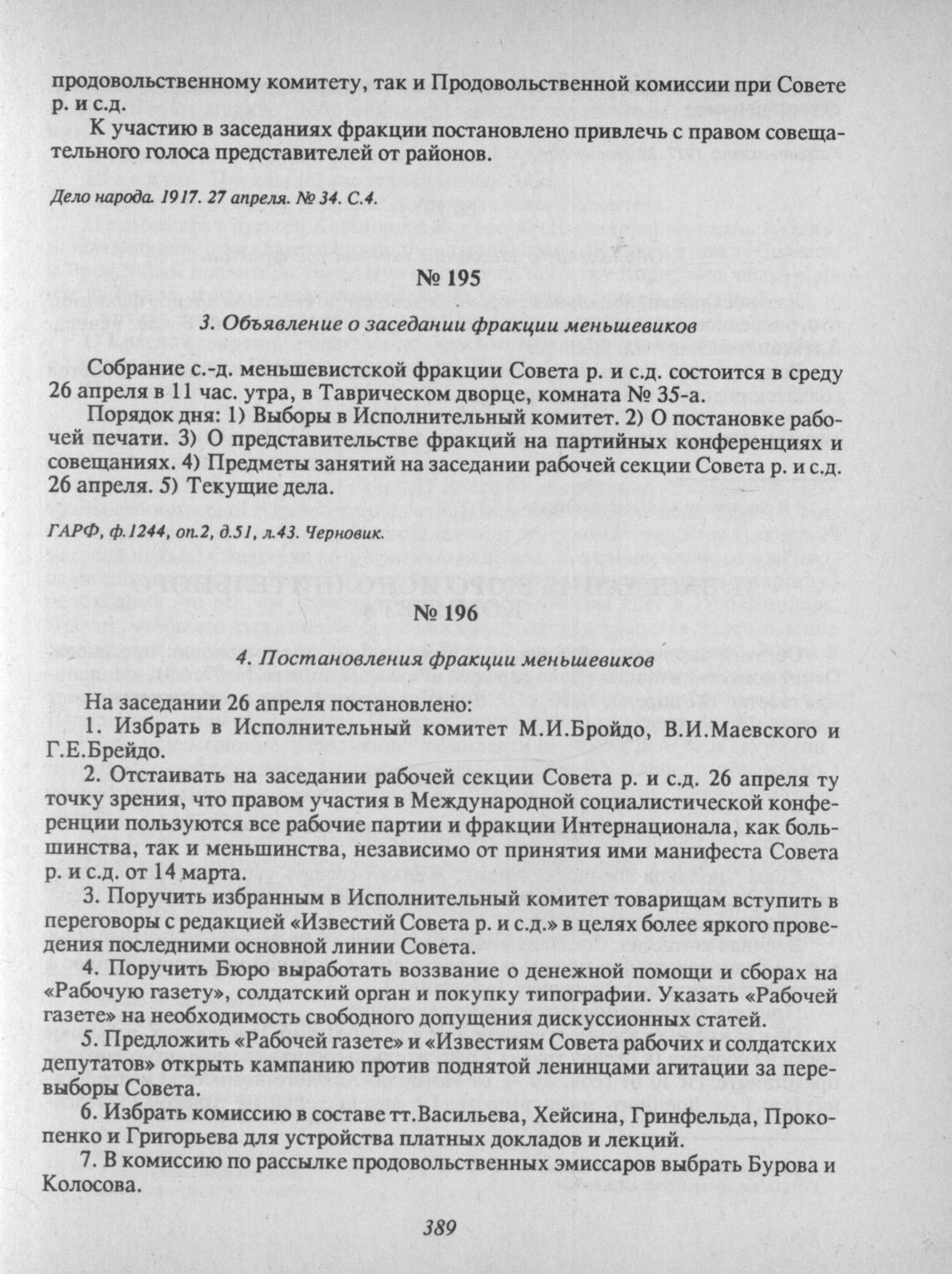 Петроградский Совет рабочих и солдатских депутатов в 1917 году: Протоколы, стенограммы и отчеты, резолюции и постановления общих собраний, секций, заседаний Исполнительного комитета, Бюро Исполнительного комитета и фракций (27 февраля — 25 октября 1917 года). Т. 2 (1 апреля — 5 мая 1917 года). — Спб.: Изд-во «Б-ка «Звезды»; АО «Атос», 1995.