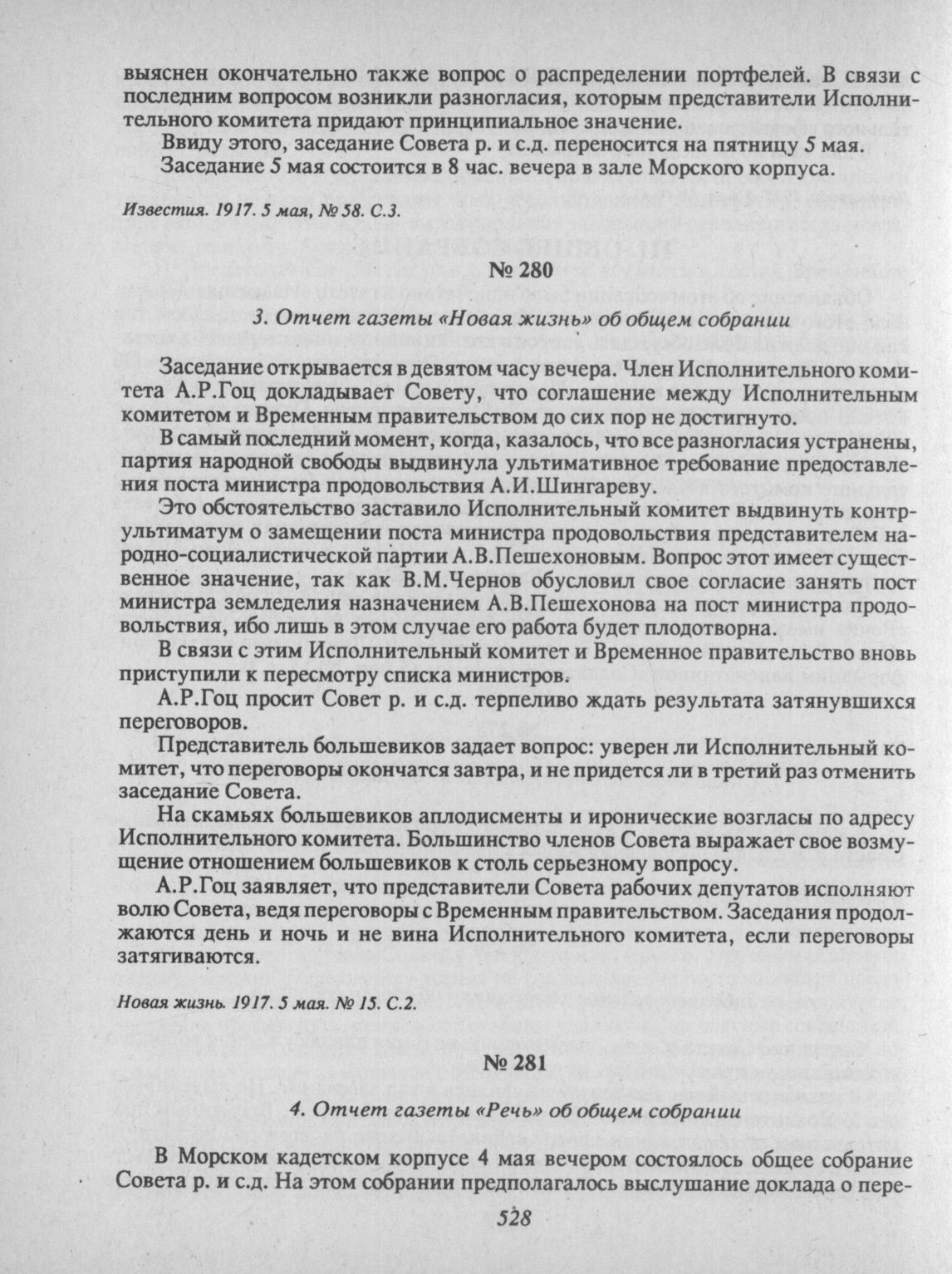 Петроградский Совет рабочих и солдатских депутатов в 1917 году: Протоколы, стенограммы и отчеты, резолюции и постановления общих собраний, секций, заседаний Исполнительного комитета, Бюро Исполнительного комитета и фракций (27 февраля — 25 октября 1917 года). Т. 2 (1 апреля — 5 мая 1917 года). — Спб.: Изд-во «Б-ка «Звезды»; АО «Атос», 1995.