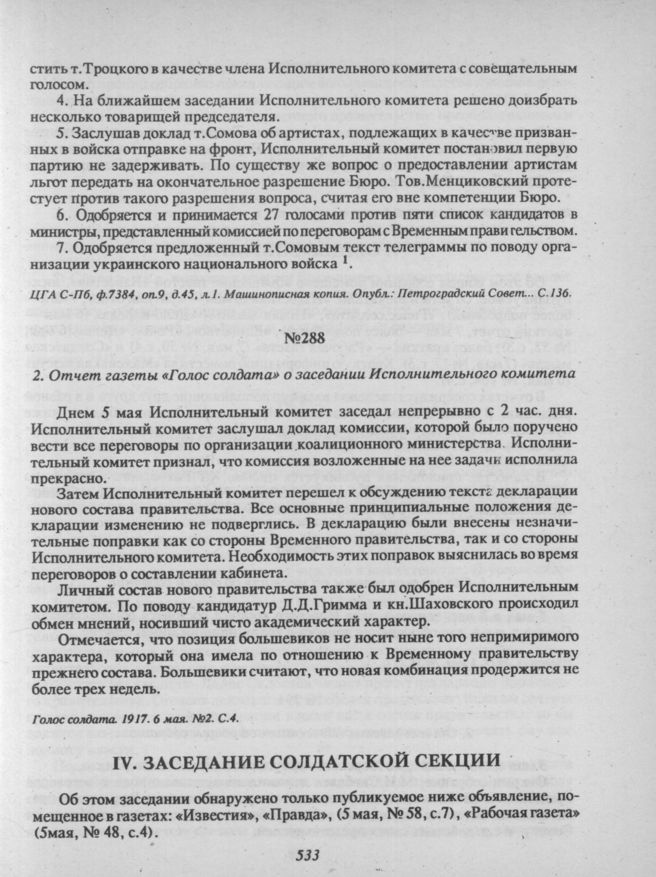 Петроградский Совет рабочих и солдатских депутатов в 1917 году: Протоколы, стенограммы и отчеты, резолюции и постановления общих собраний, секций, заседаний Исполнительного комитета, Бюро Исполнительного комитета и фракций (27 февраля — 25 октября 1917 года). Т. 2 (1 апреля — 5 мая 1917 года). — Спб.: Изд-во «Б-ка «Звезды»; АО «Атос», 1995.