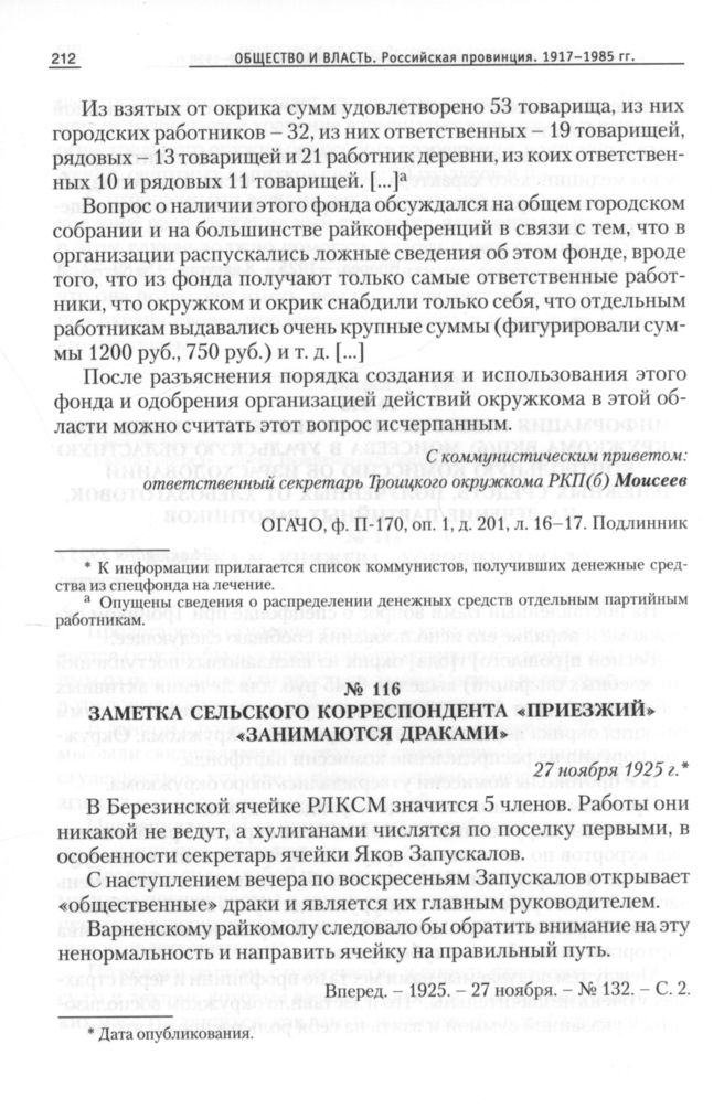 Общество и власть. Российская провинция. 1917-1985: Документы и материалы в 6 т. Челябинская область. Т. 1. 1917-1945. — Челябинск: Книга, 2005.