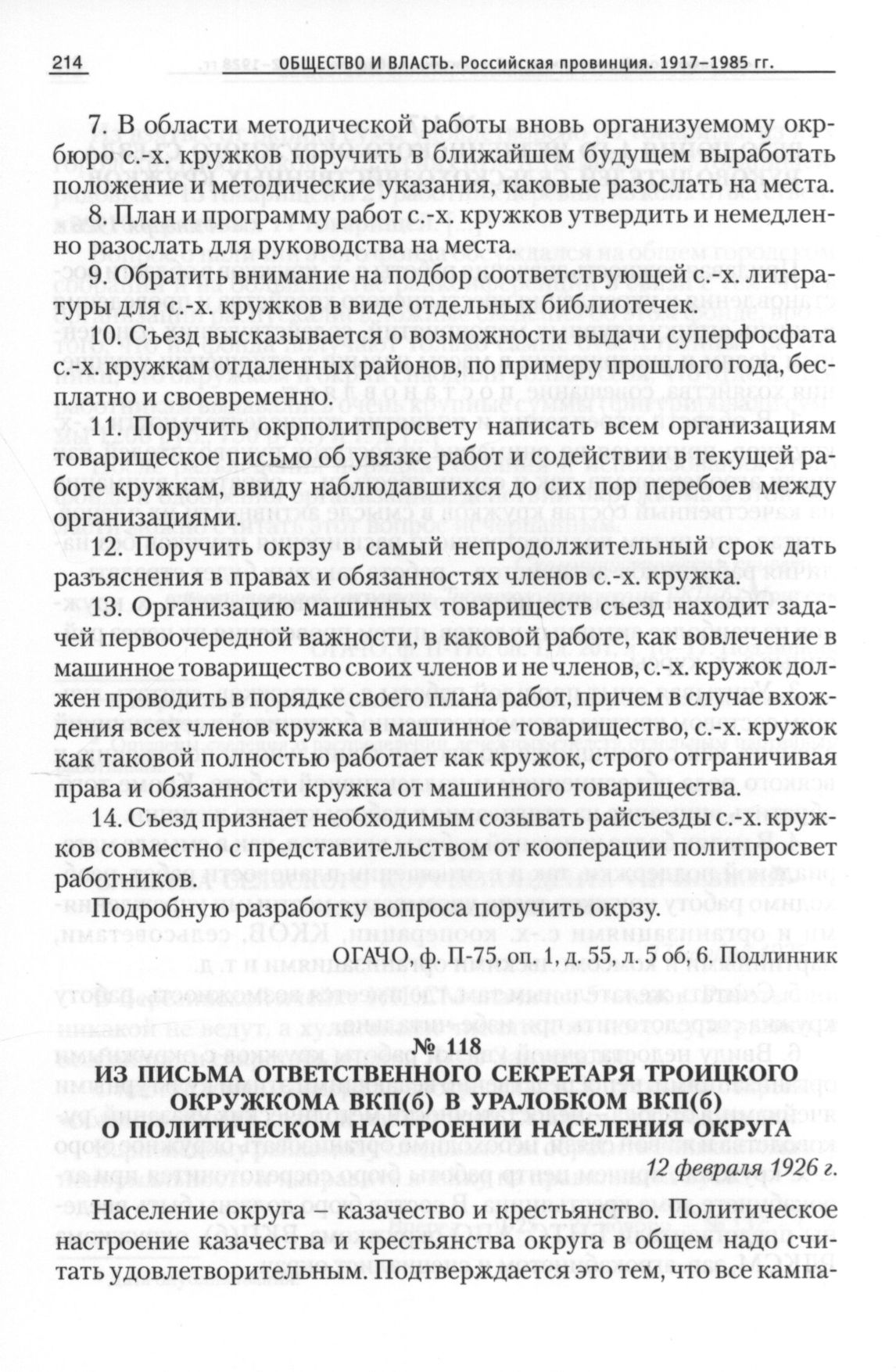 Из письма ответственного секретаря Троицкого окружкома ВКП(б) в Ура...