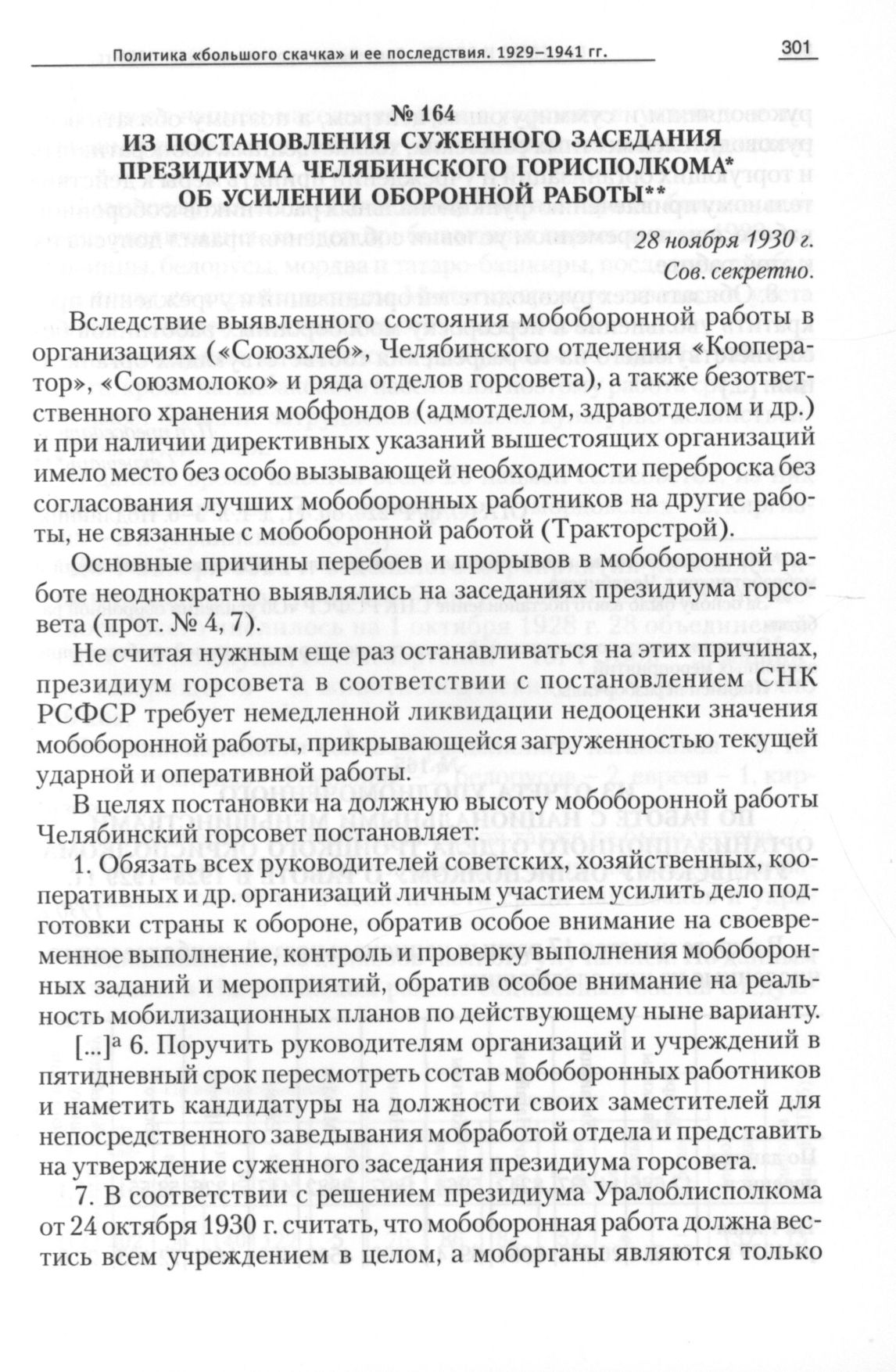 Из постановления суженного заседания президиума Челябинского горисполкома об усилении оборонной работы, 28 ноября 1930 г. // ОГАЧО, Ф. P-220, Оп. 11, Д. 1, Л. 5-6. Подлинник.